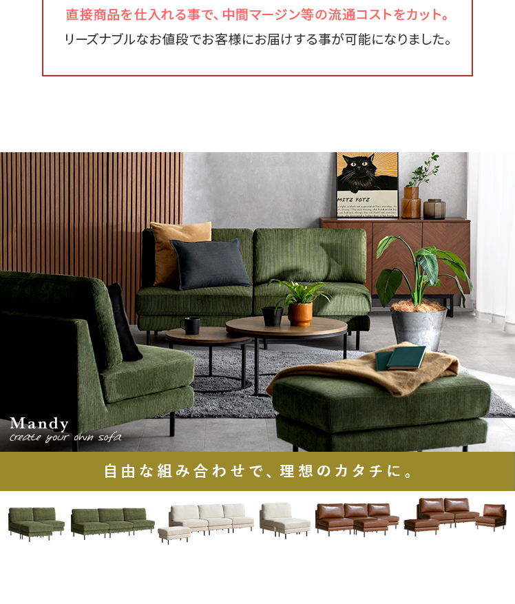 【3Pソファセット】組み合わせユニットソファMandy〔マンディ〕