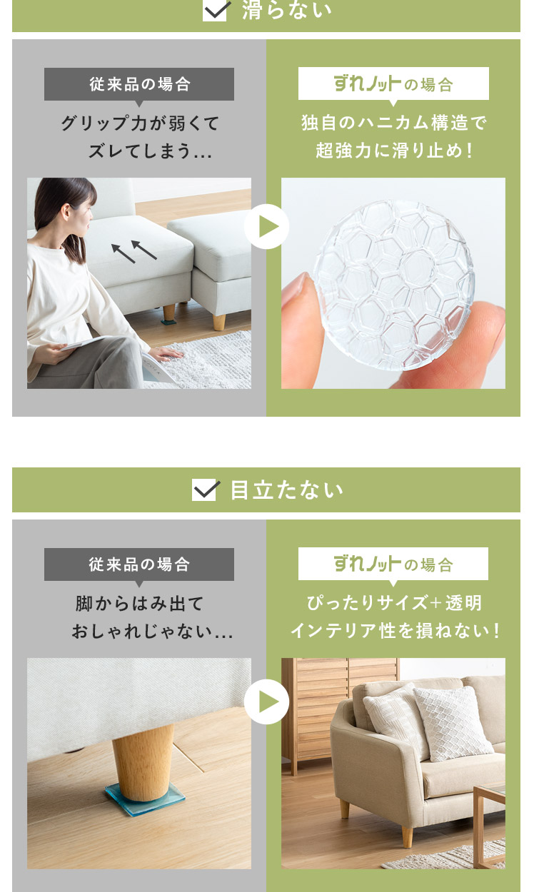ずれ防止 転倒防止 キズ防止 ソファ脚 ダイニング脚 耐震対策