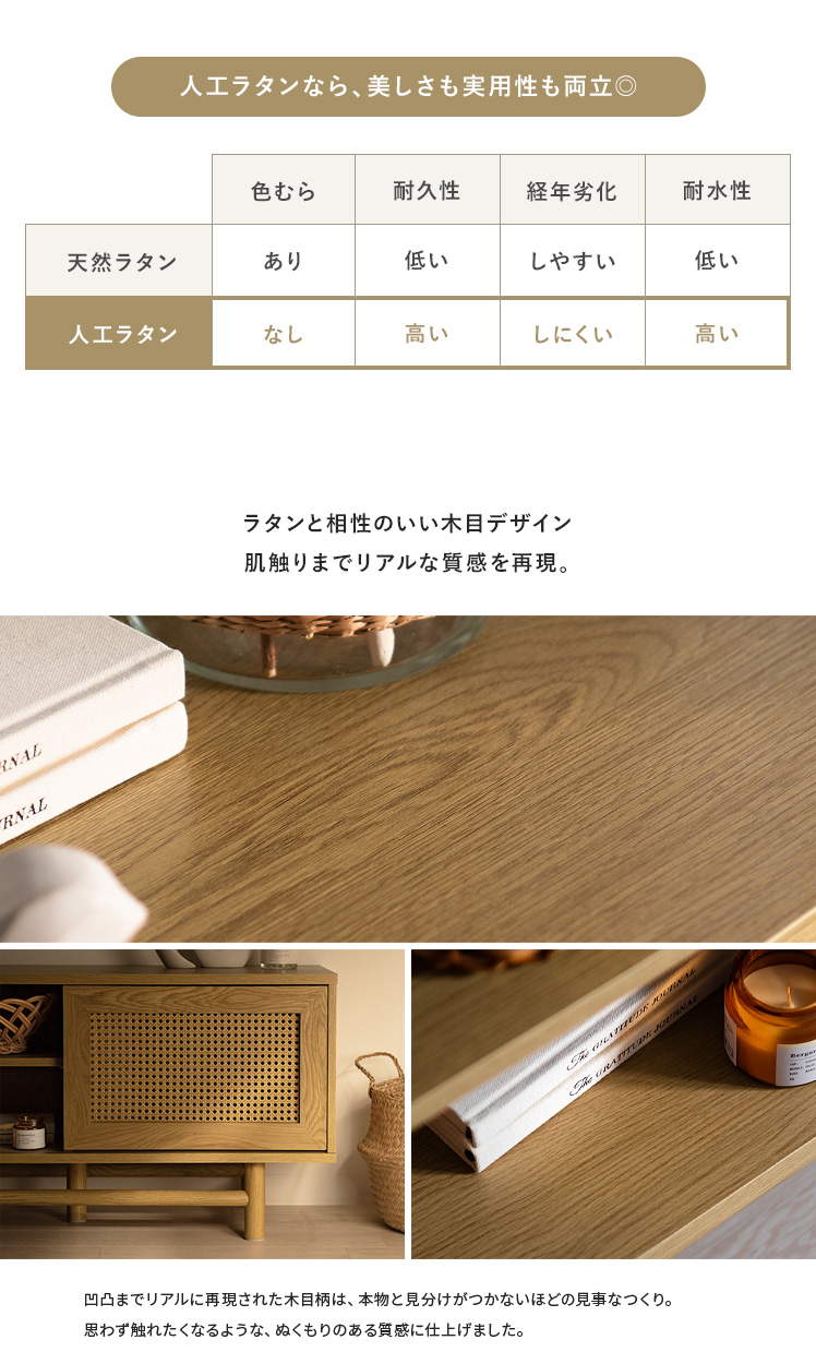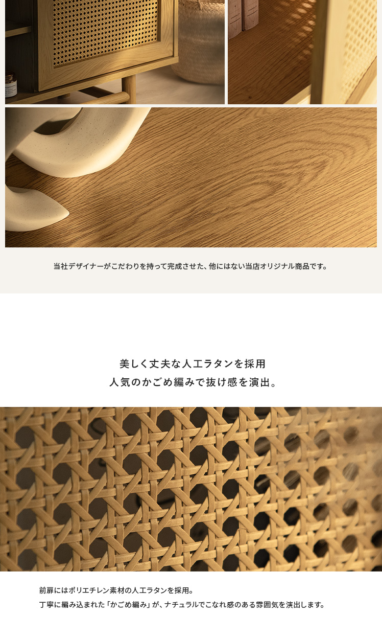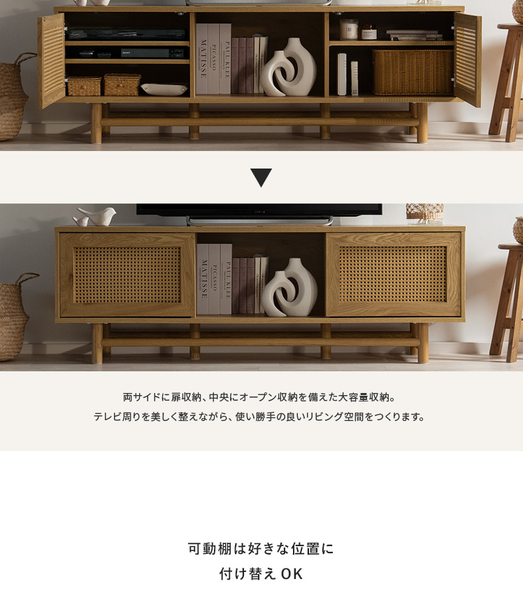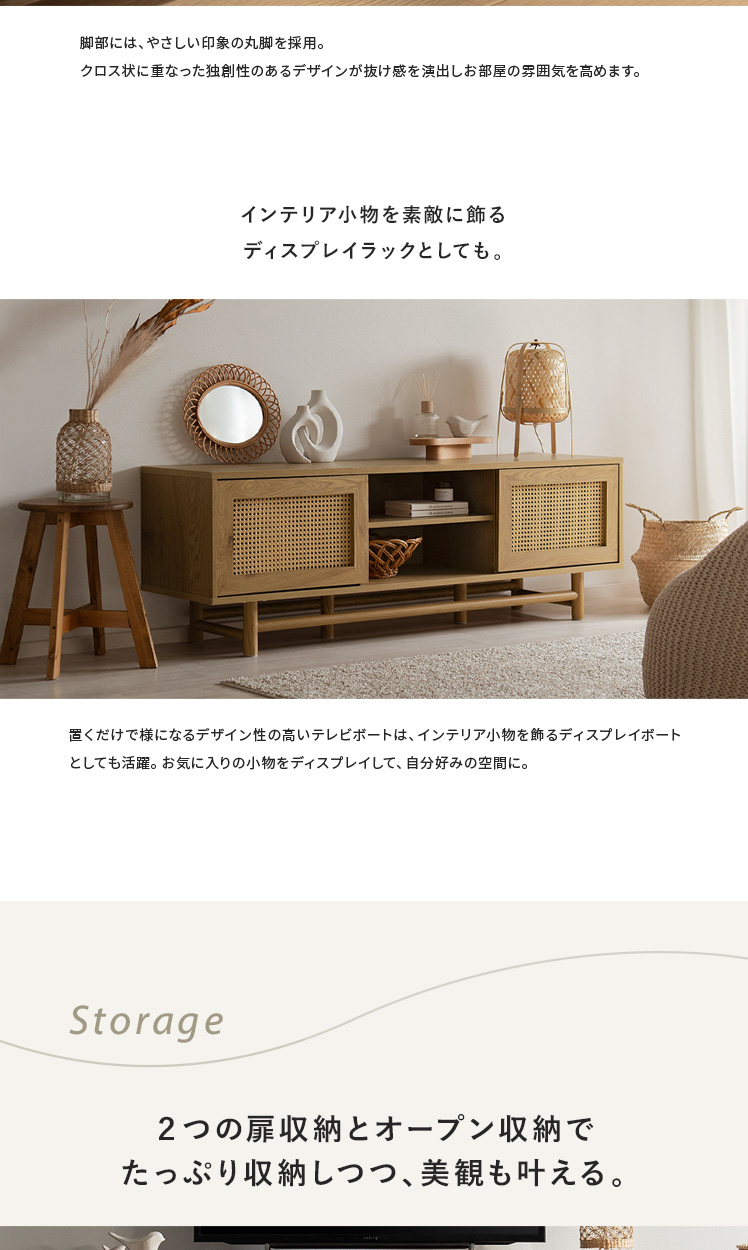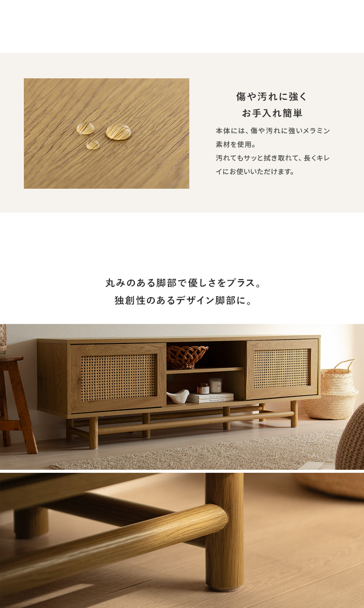 ラタンテレビ台 Katrie〔カトリエ〕/味わい豊かな木目とラタンが調和した、置くだけで絵になるテレビボート“Katrie(カトリエ)”こだわりのデザインとたっぷりの収納力すっきり美しく、上質なお部屋づくりを。