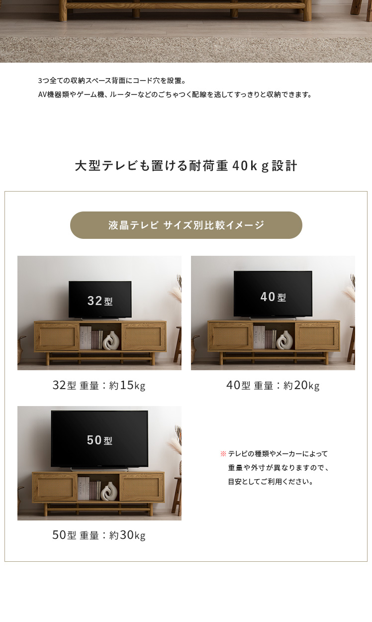 ナチュラル 扉収納 コード穴付き かごめ編み 木目デザイン テレビボード【5%OFFクーポン対象|公式なら毎日お得】
