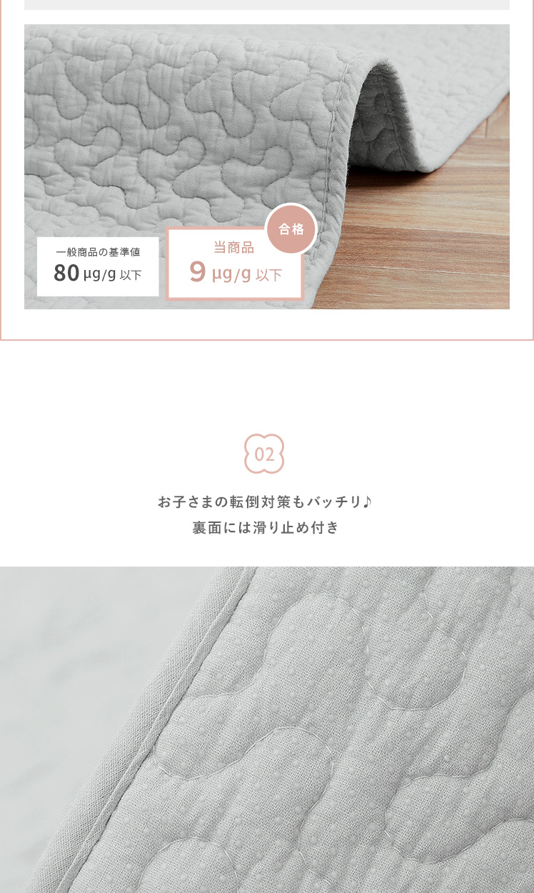 滑り止め付き 肌に優しい ナチュラル 低ホルムアルデヒド