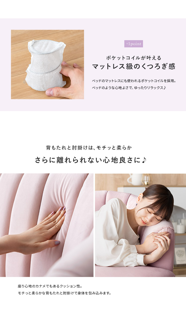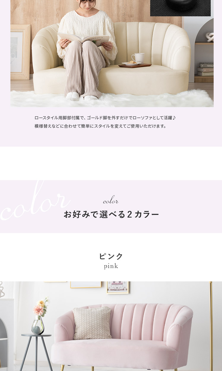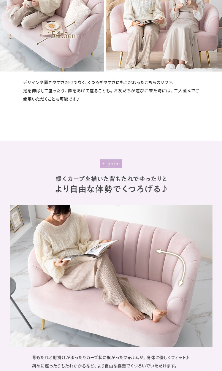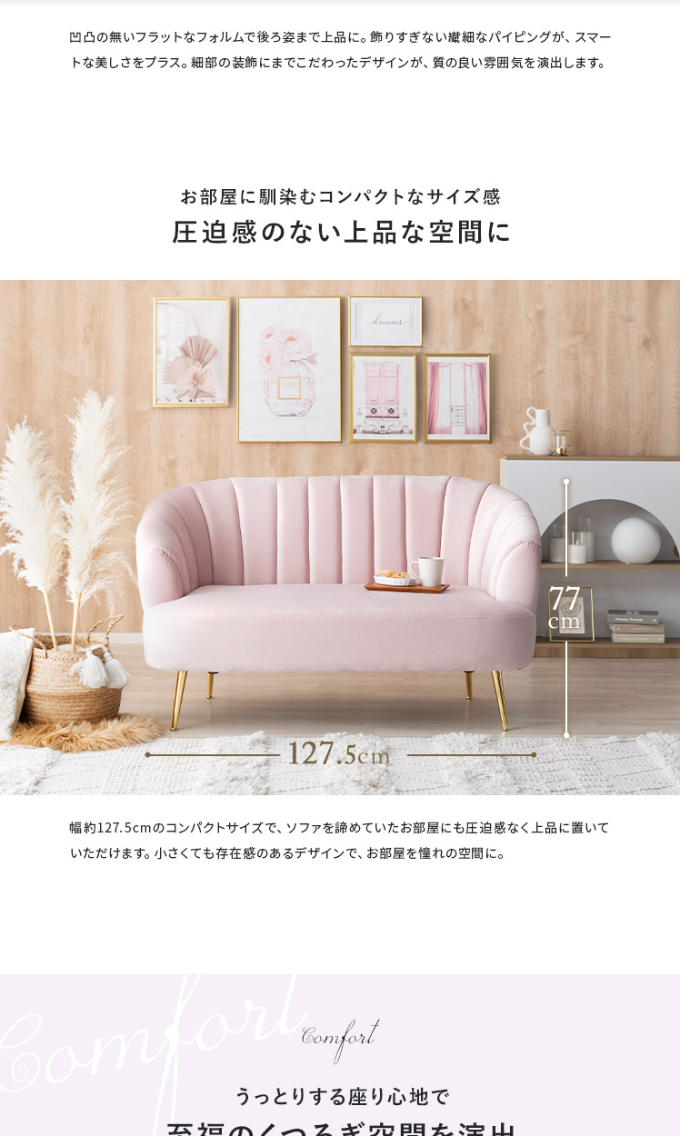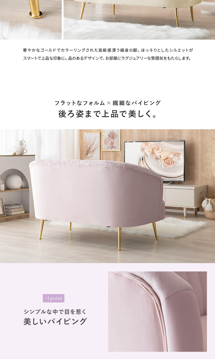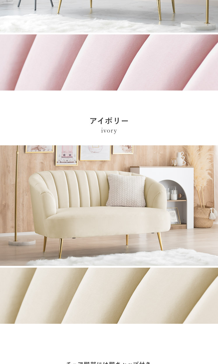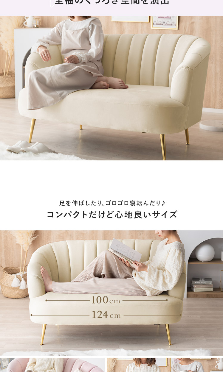2人掛けシェルソファ Yuffie〔ユフィ〕/小さくても存在感のあるシェルソファ“Yuffie(ユフィ)”なめらかな艶感のベロア生地が、エレガントな雰囲気を演出。光沢を放つ真鍮風のゴールド脚はラグジュアリーさを添えます。丸みを帯びたシェル状のフォルムは愛らしく、思わず触れたくなるモチっと感も魅力♪憧れを叶えるソファで“私だけのときめき空間”をご自宅に。