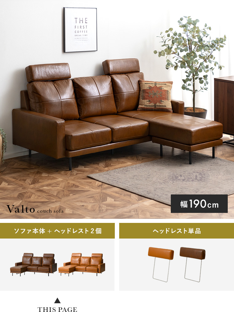 ヘッドレスト2個付きカウチソファ Valto〔ヴァルト〕