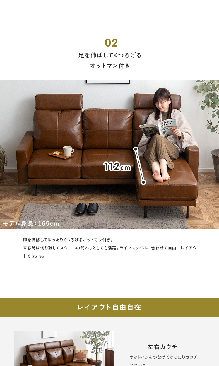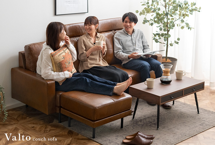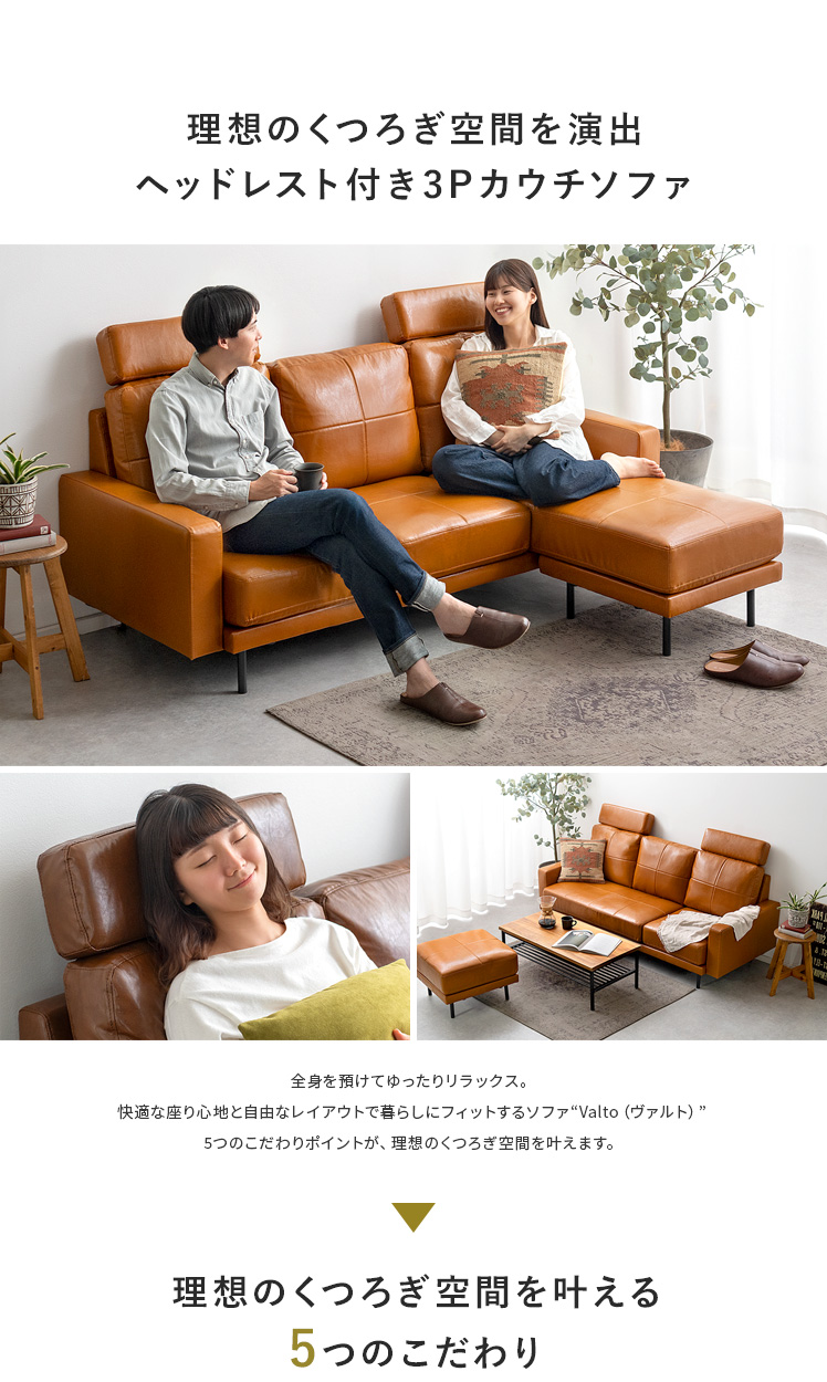 ヘッドレスト2個付きカウチソファ Valto〔ヴァルト〕/全身を預けてゆったりリラックス。快適な座り心地と自由なレイアウトで暮らしにフィットするソファ“Valto(ヴァルト)”5つのこだわりポイントが、理想のくつろぎ空間を叶えます。