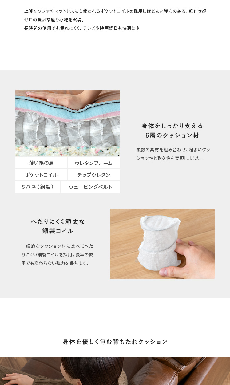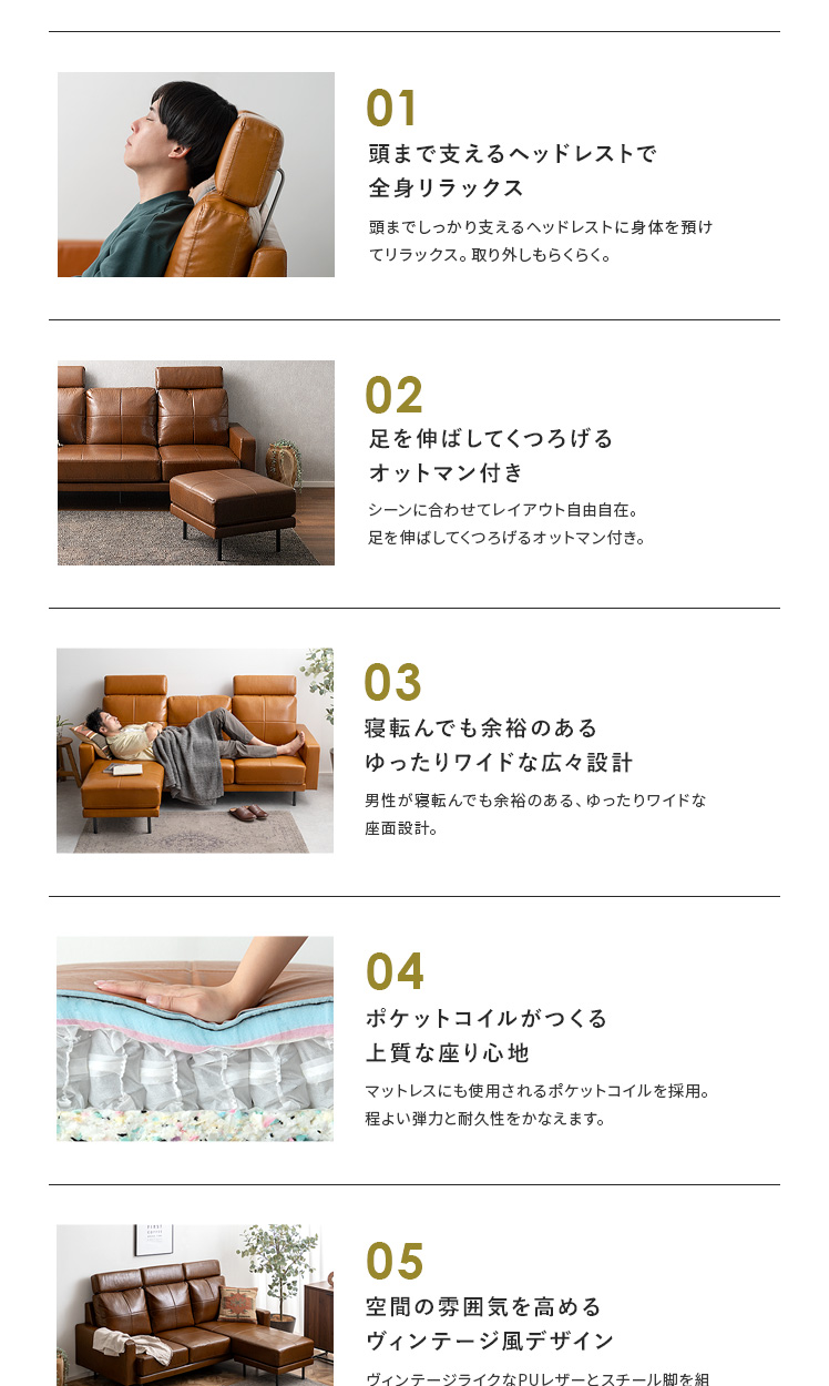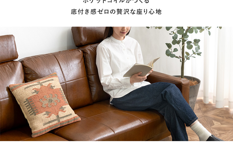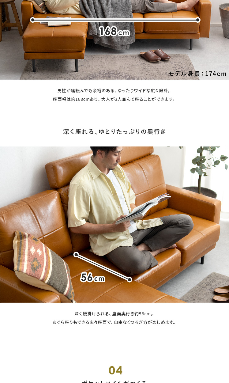 ハイバック レザー 3人掛け l字 オットマン付き ポケットコイル