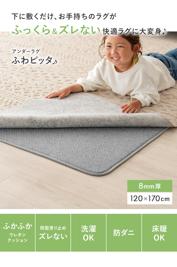 [120×170/厚さ8mm] アンダーラグ ふわピッタ