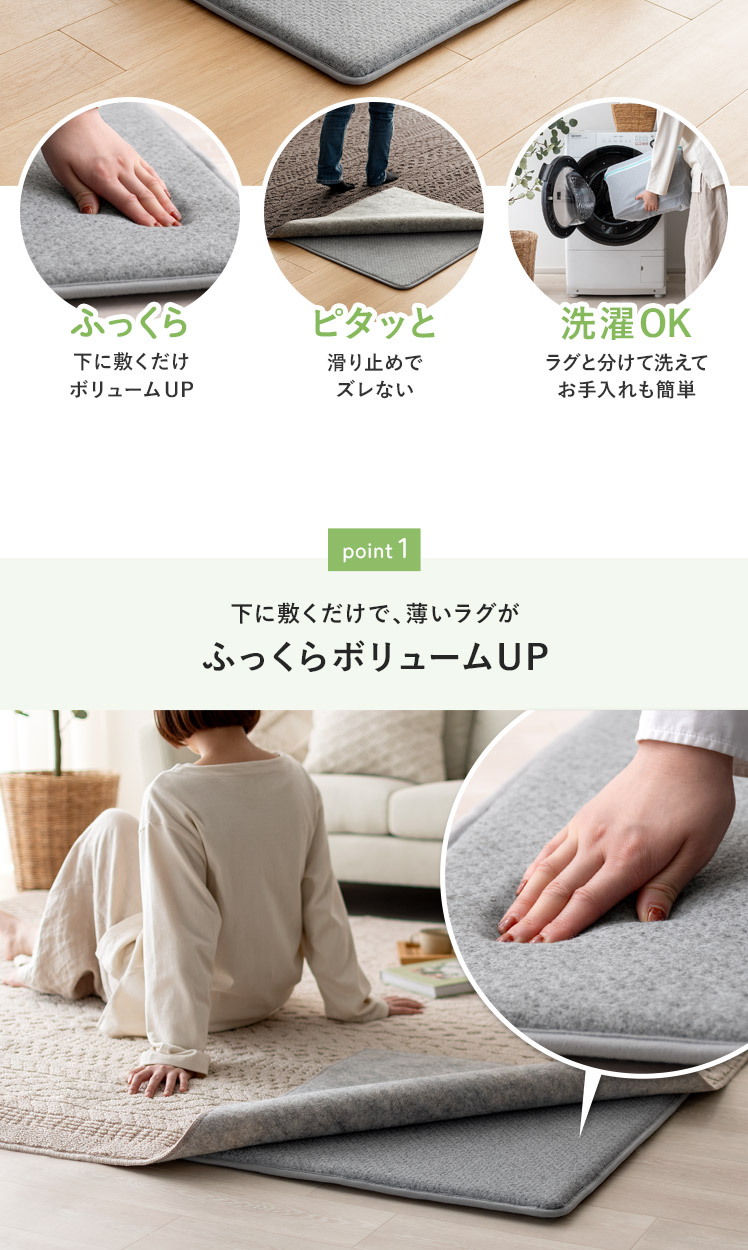 下敷きラグ 滑り止めラグ 洗える ふかふか ふっくら