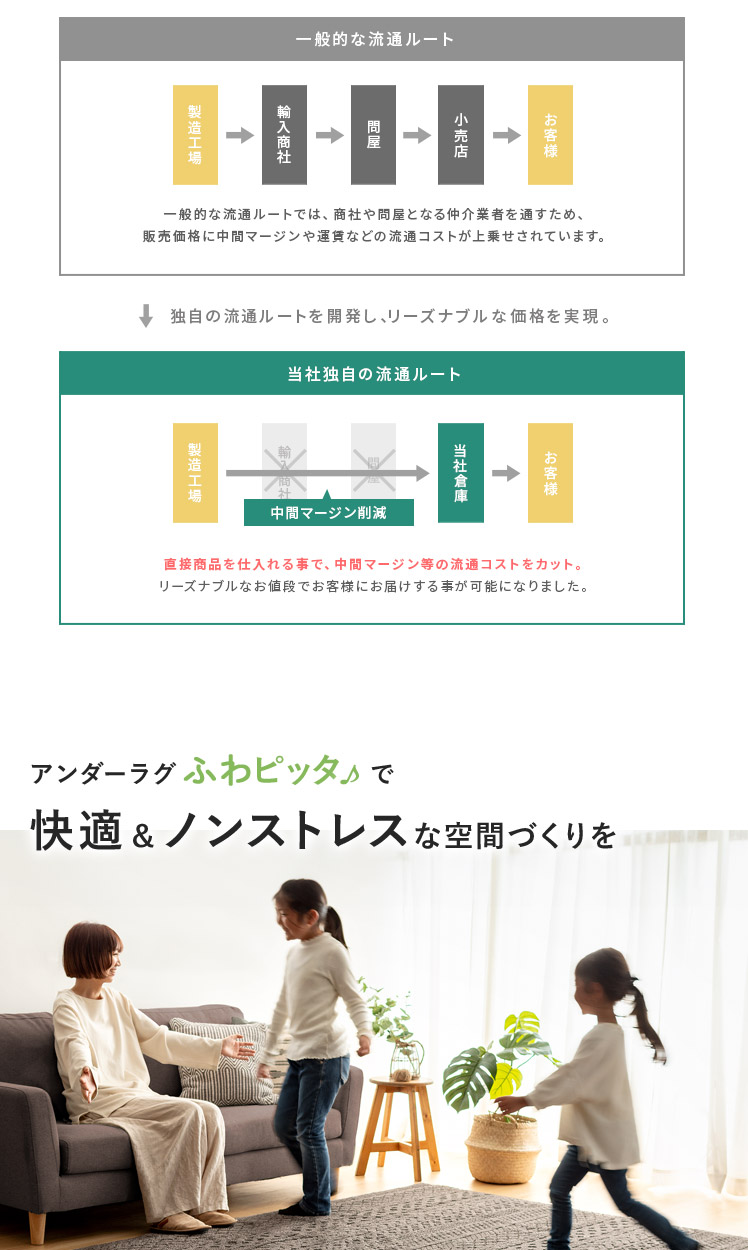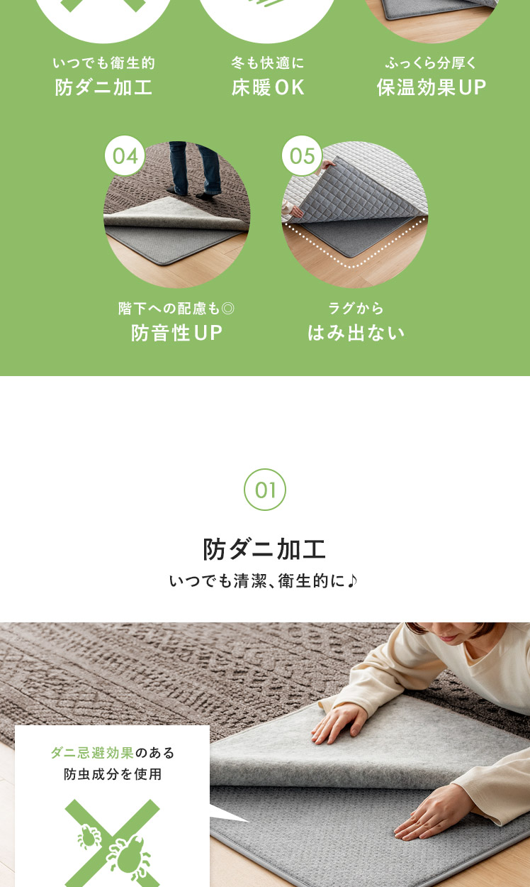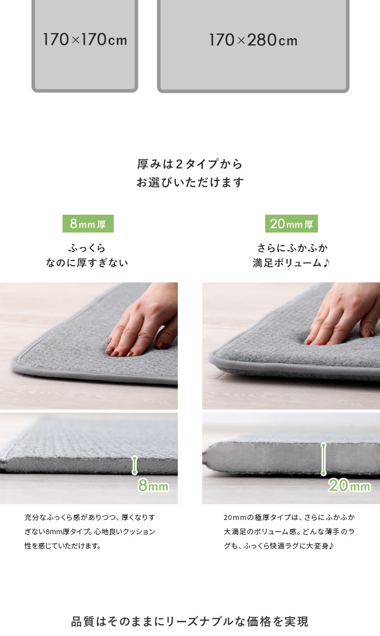 [170×170/厚さ8mm] アンダーラグ ふわピッタ