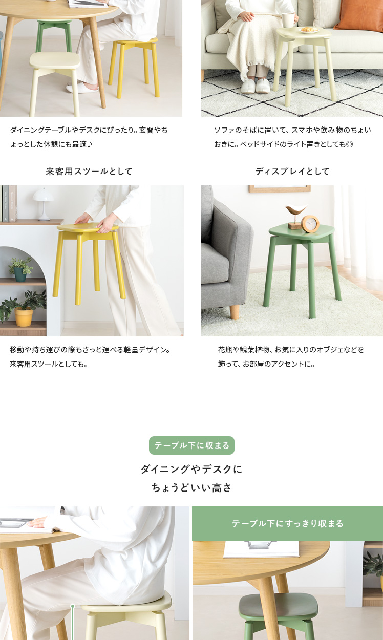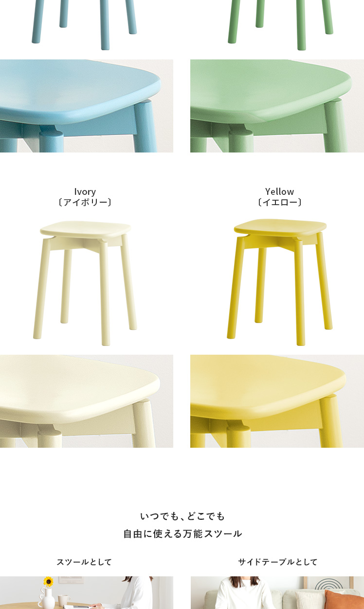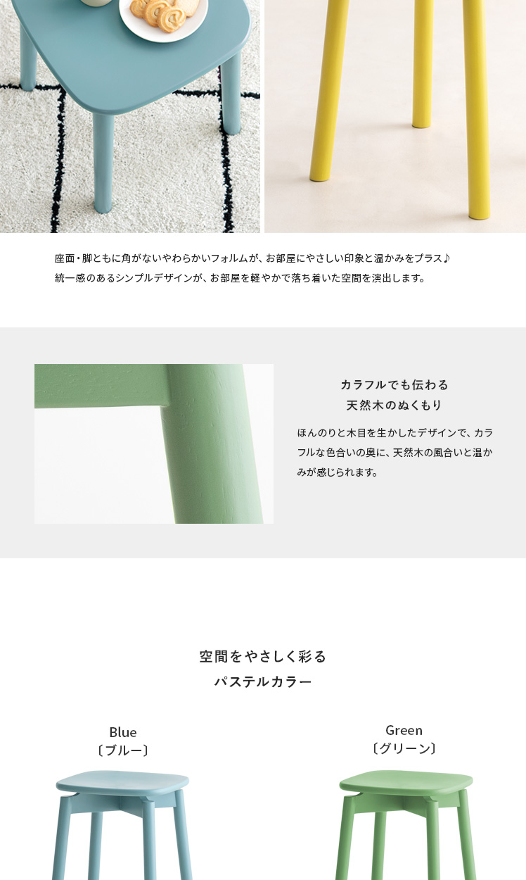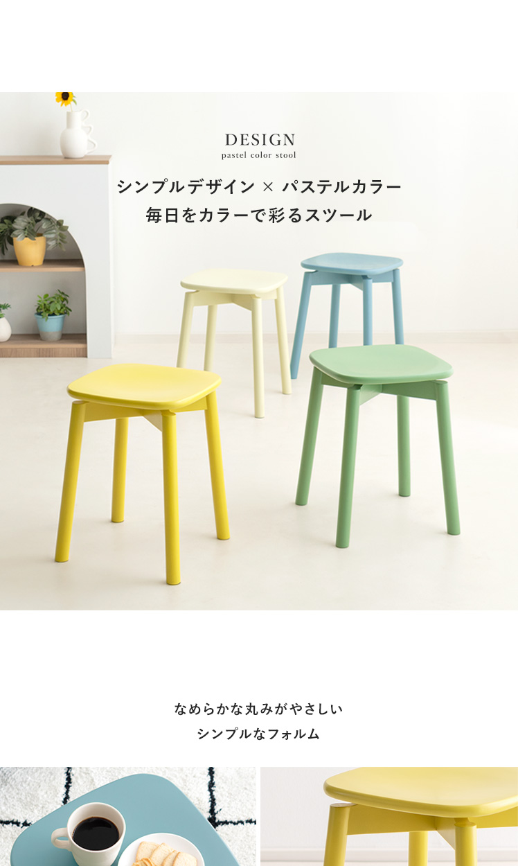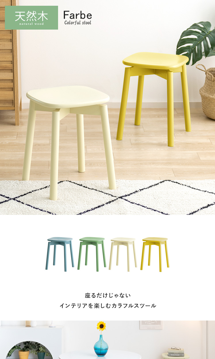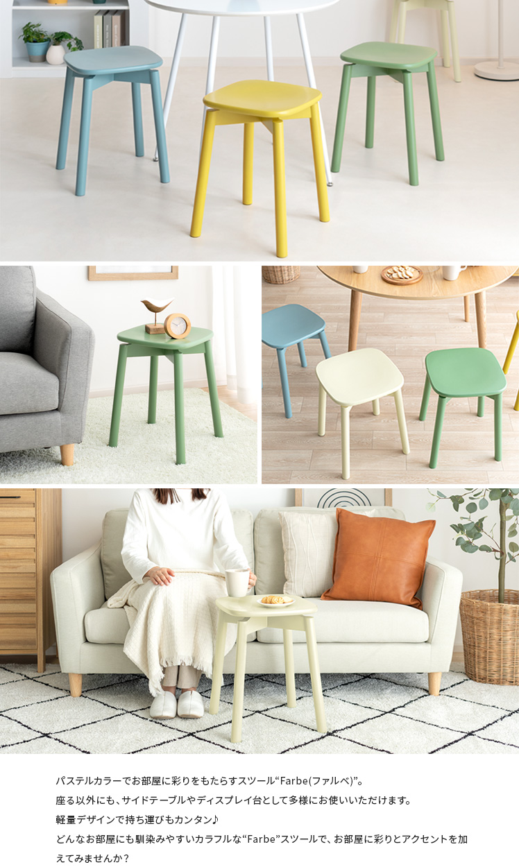 カラフルスツール Farbe〔ファルベ〕/パステルカラーでお部屋に彩りをもたらすスツール“Farbe(ファルベ)”。座る以外にも、サイドテーブルやディスプレイ台として多様にお使いいただけます。軽量デザインで持ち運びもカンタン♪どんなお部屋にも馴染みやすいカラフルな“Farbe”スツールで、お部屋に彩りとアクセントを加えてみませんか?