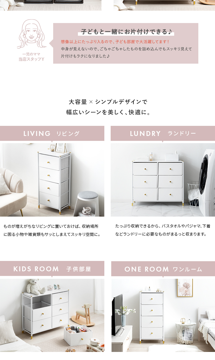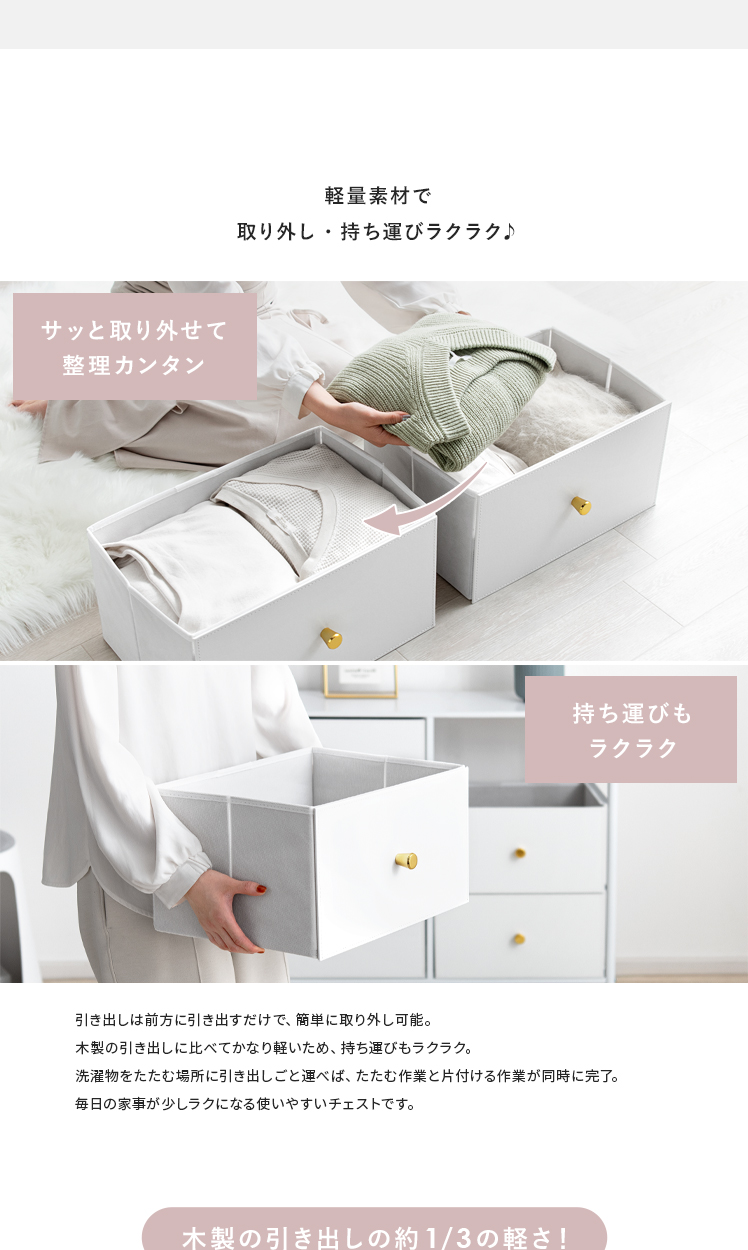 ワイド コンパクト 収納 ラック 小物収納 衣類収納 おしゃれ シンプル モダン 韓国風 韓国インテリア スチール 不織布 PUレザー スチール 大容量 軽い 軽量 たんす 引き出し ホワイト【11/4正午までSALE対象|クーポン併用可】【5%OFFクーポン対象|公式なら毎日お得】
