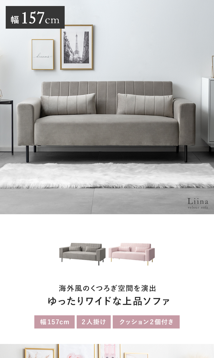 [幅157] 2Pベロアソファ Liina〔リーナ〕