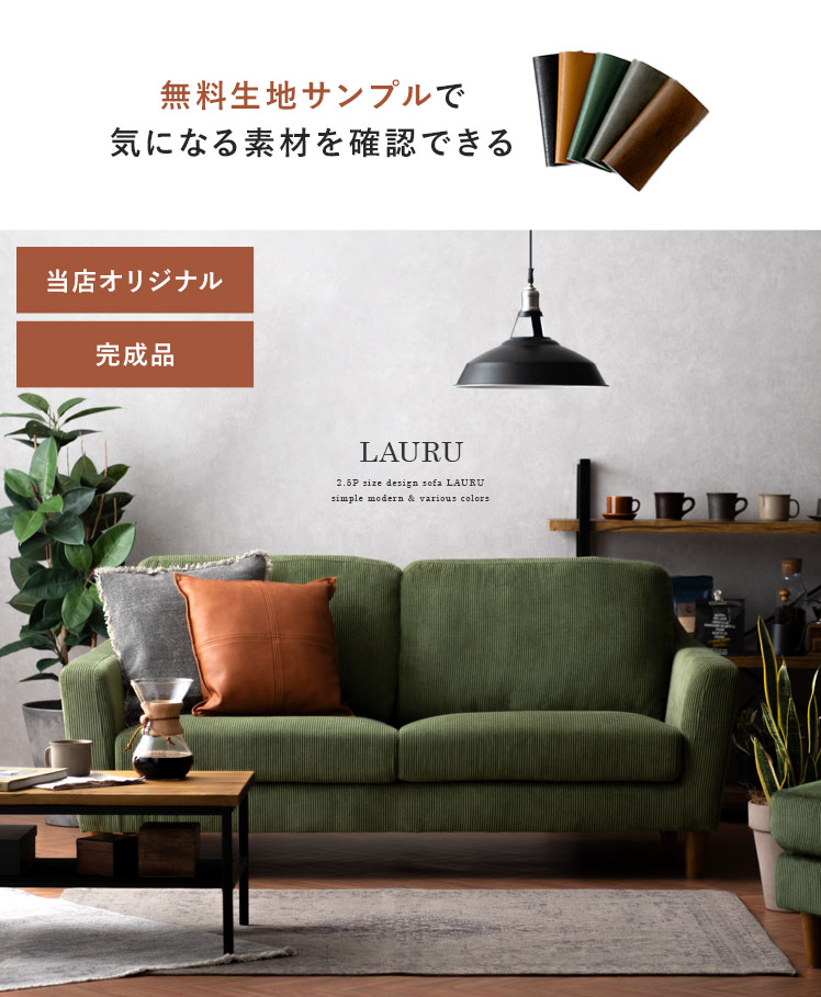 2.5Pデザインソファ LAURU(ラウル)コーデュロイの商品ページです。座るたびに心地よさを実感できる極厚ウレタン入りの6層構造、合わせ易いスタンダードデザインが人気のソファです。