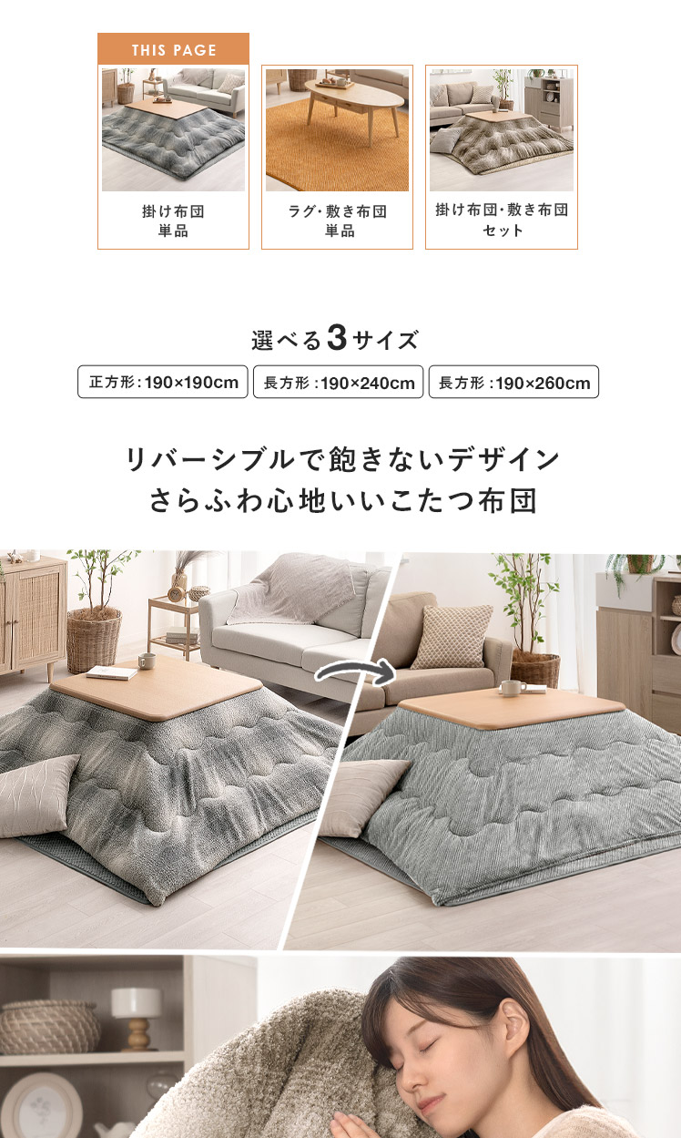 [190×190/正方形] こたつ布団 Snug〔スナッグ〕掛け布団単体