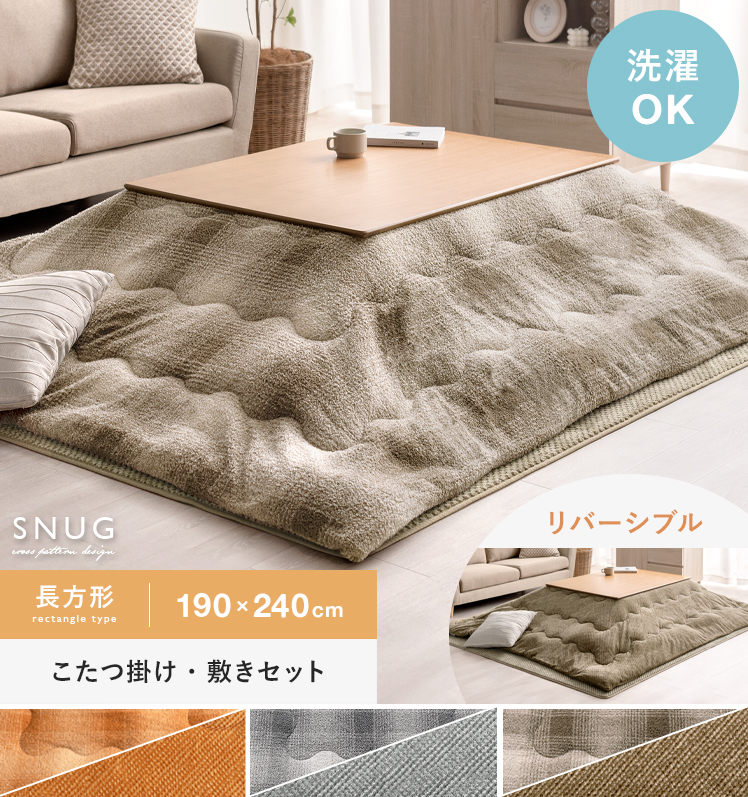 [190×240/長方形] こたつ布団・敷き布団セット Snug〔スナッグ〕