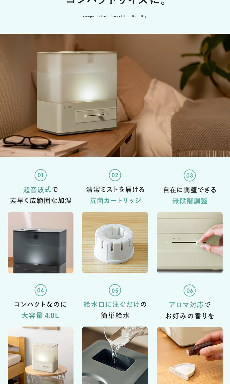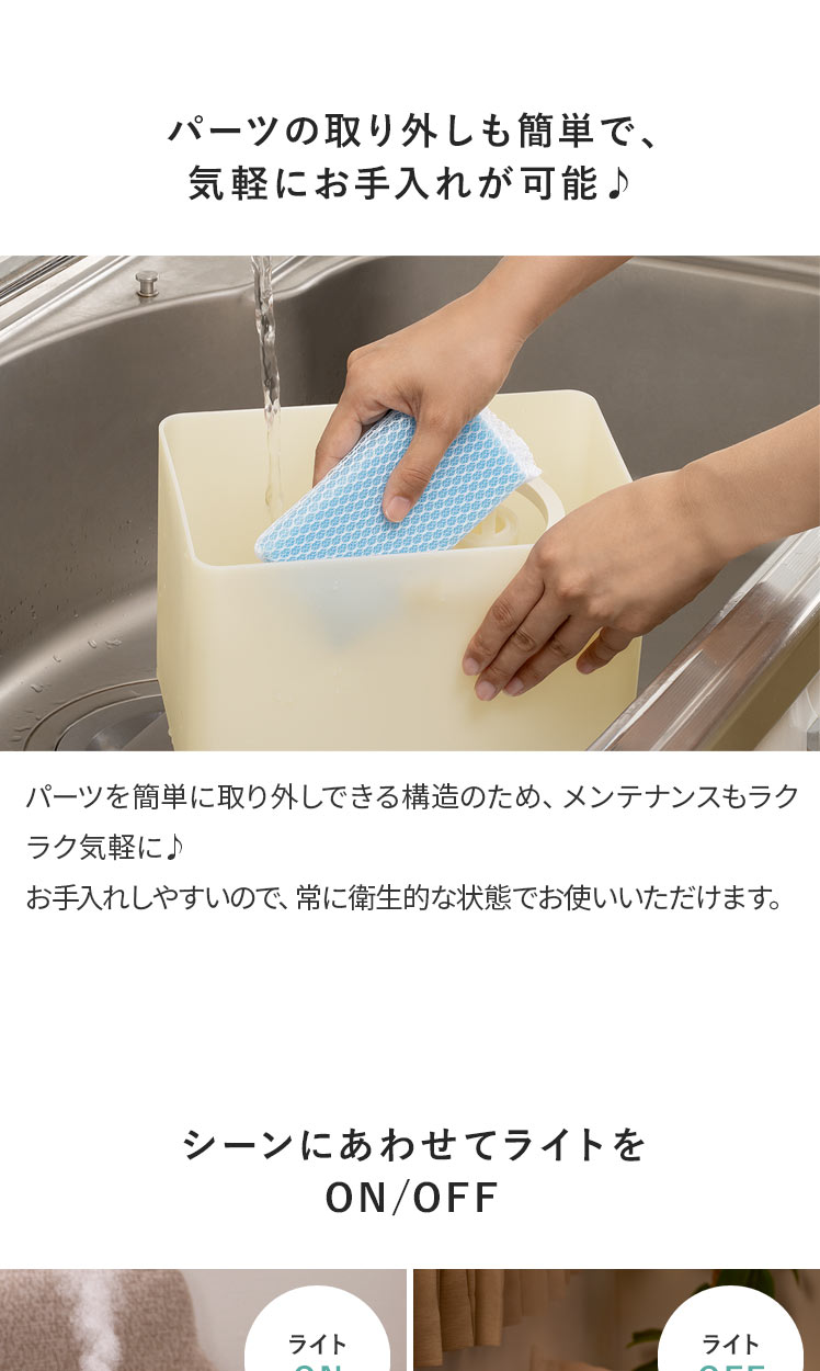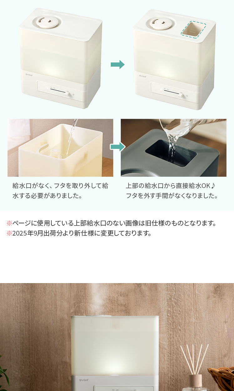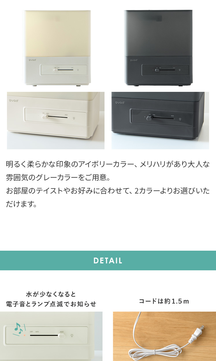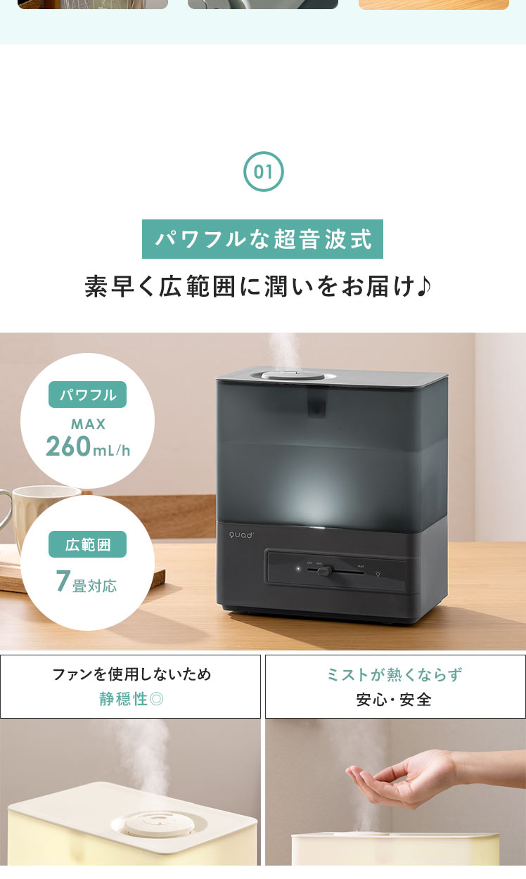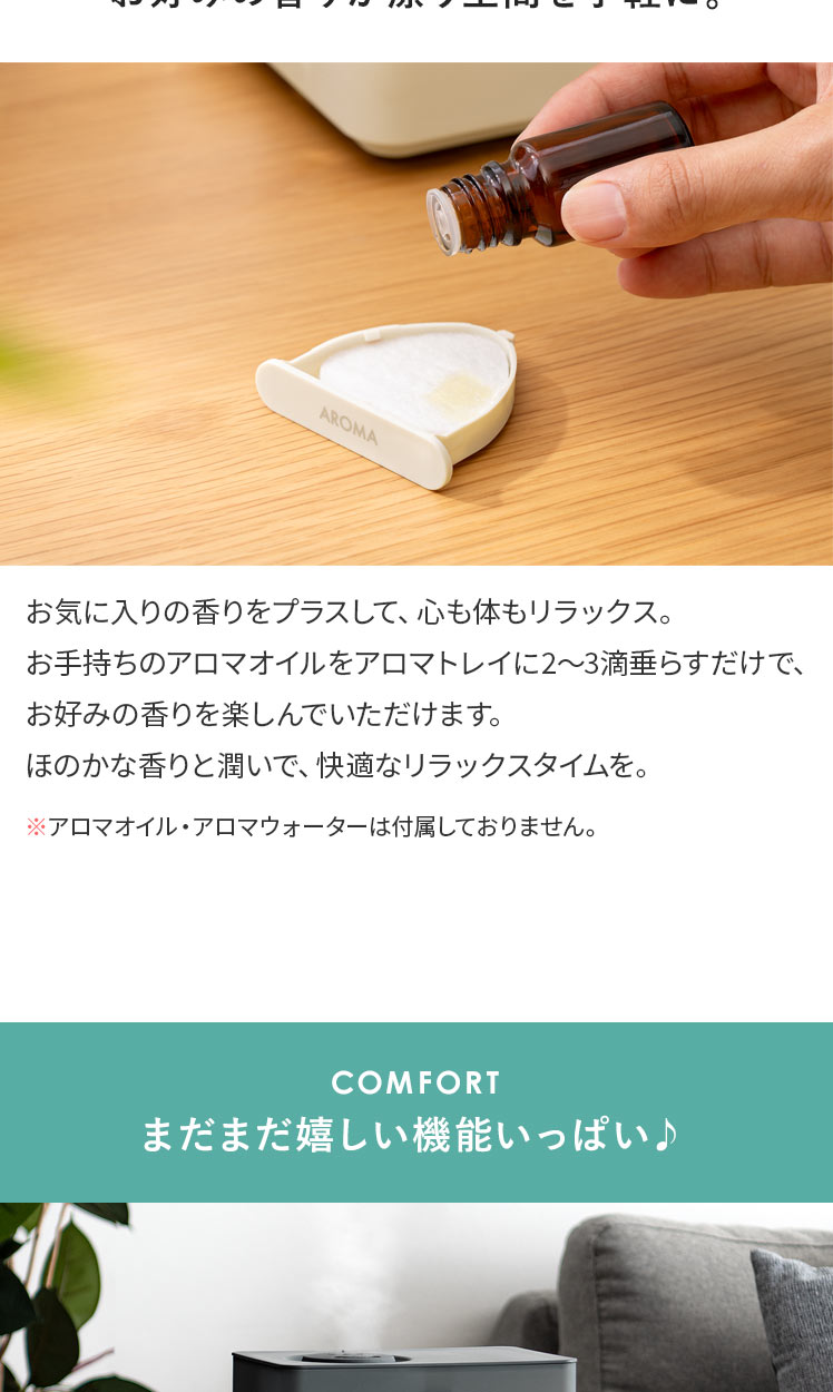 上部給水 タンク容量4L 洋室7畳 加湿量260ml/h 連続28時間 アロマ対応 抗菌 コンパクト 無段階調整 簡単給水 タイマー機能付き アイボリー グレー ◇