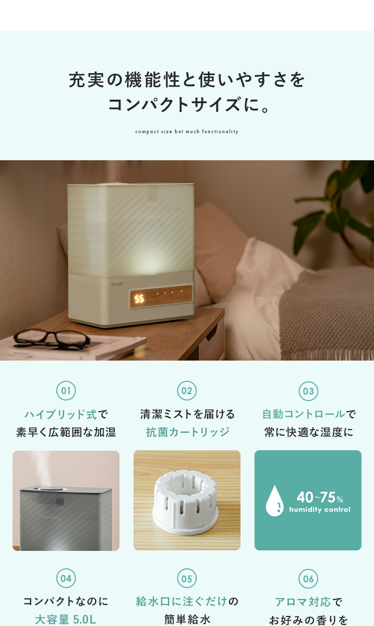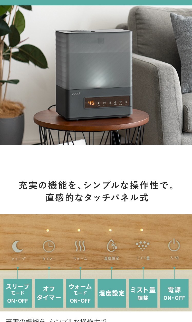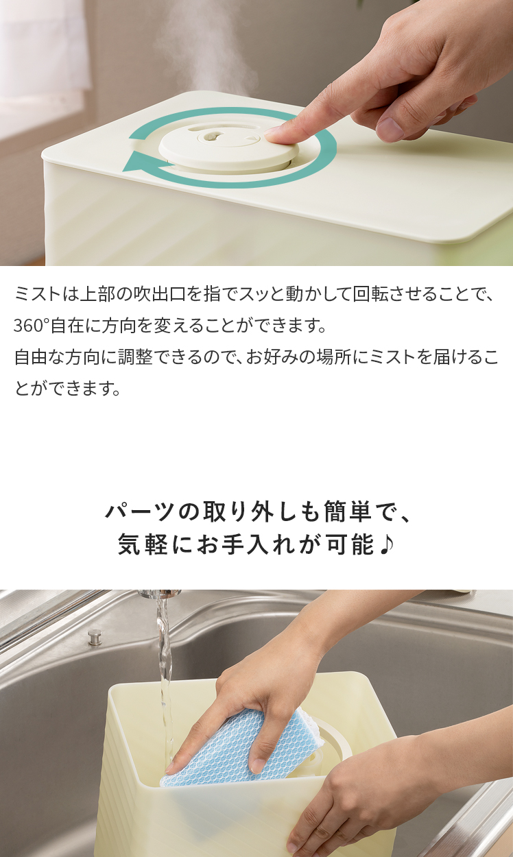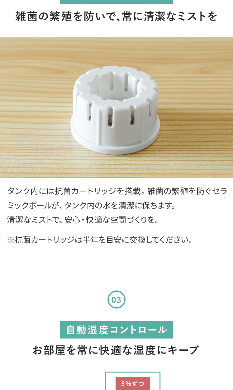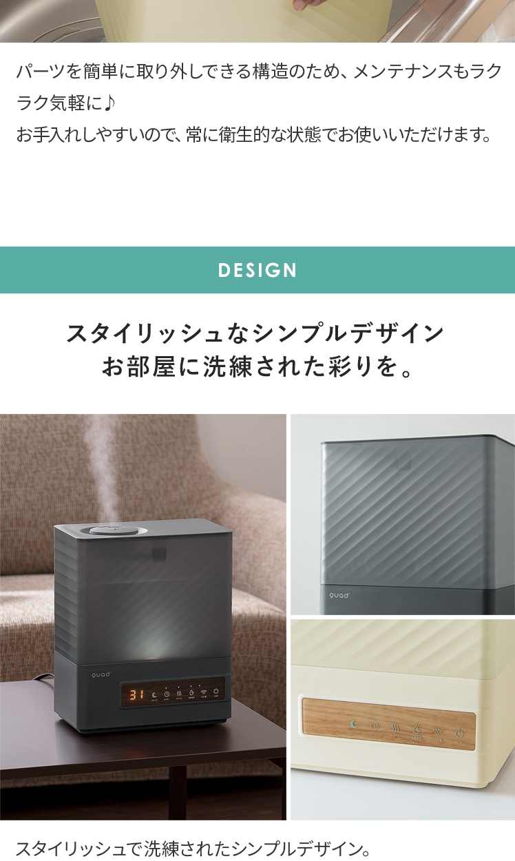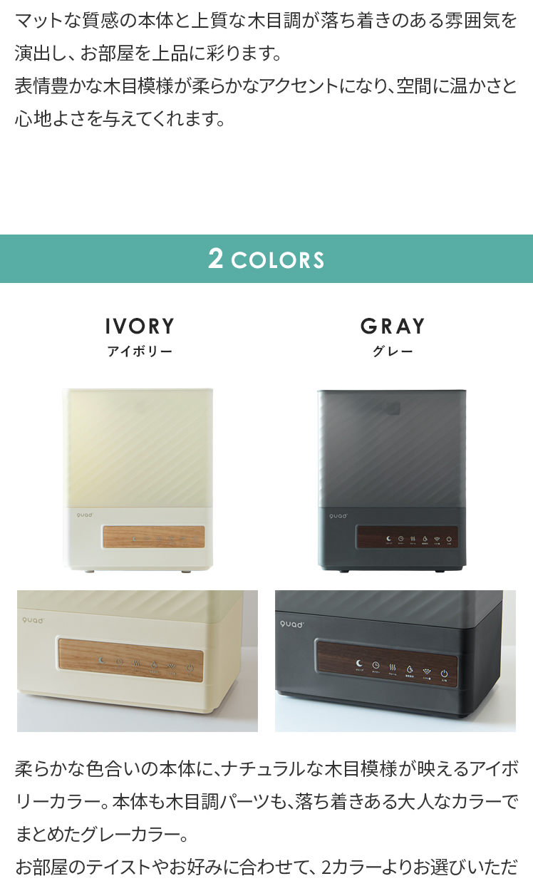アロマ対応 抗菌 コンパクト 湿度自動調整 簡単給水 タイマー機能付き アイボリー グレー 木目 ◇