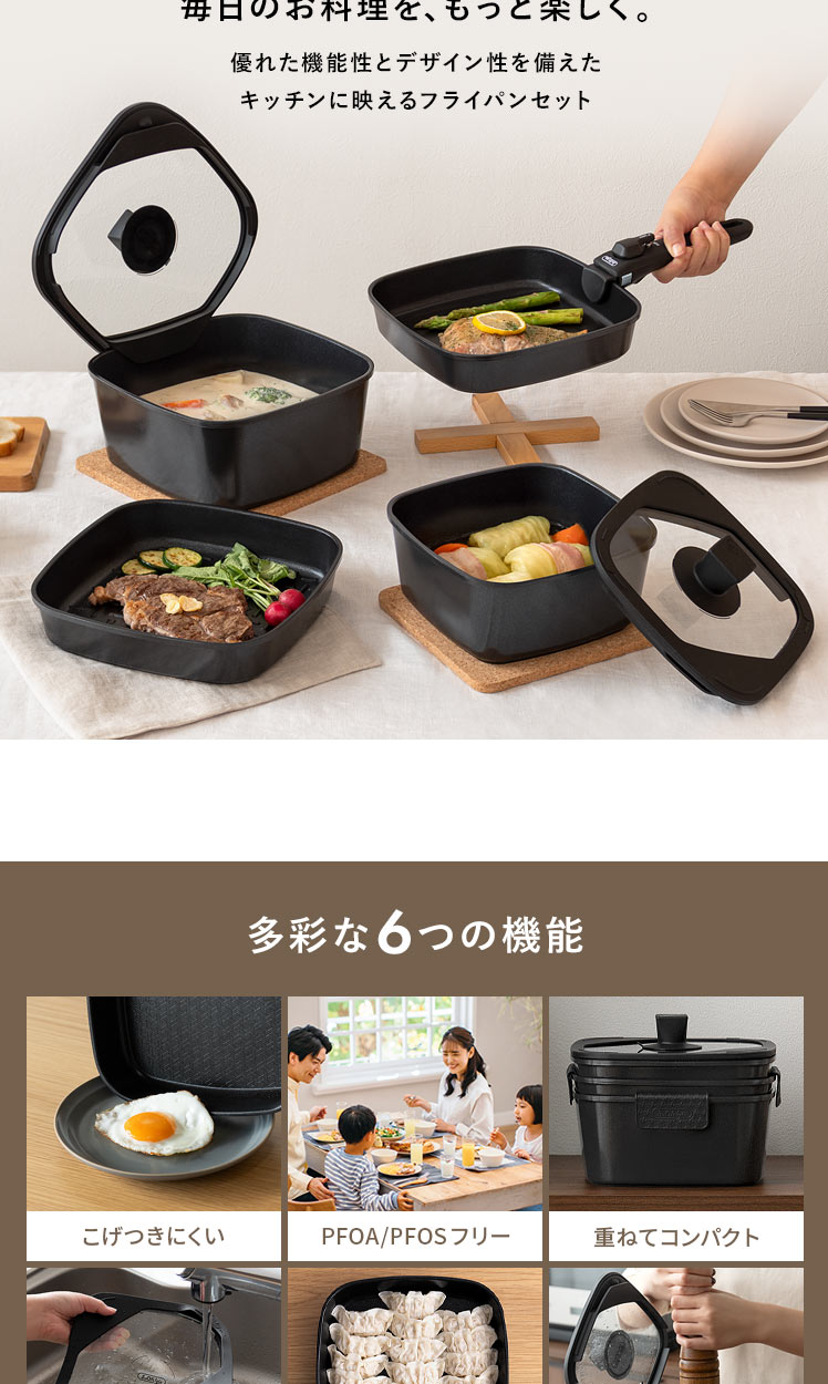BoOhgle〔ボオグル〕 フライパン13点セット/毎日のお料理を、もっと楽しく。優れた機能性とデザイン性を備えたキッチンに映えるフライパンセット