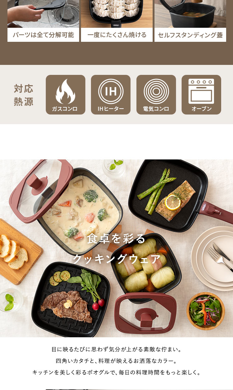 鍋 グリルパン ガラス蓋 衛生的 オーブン対応