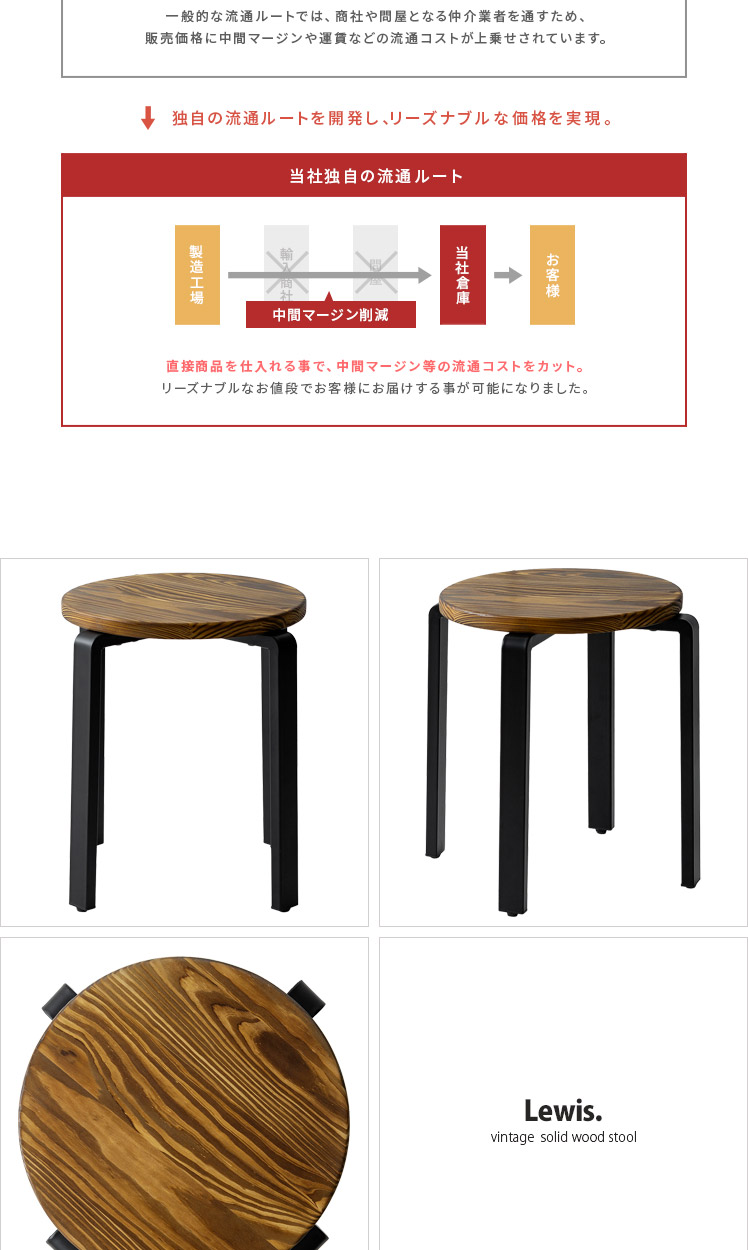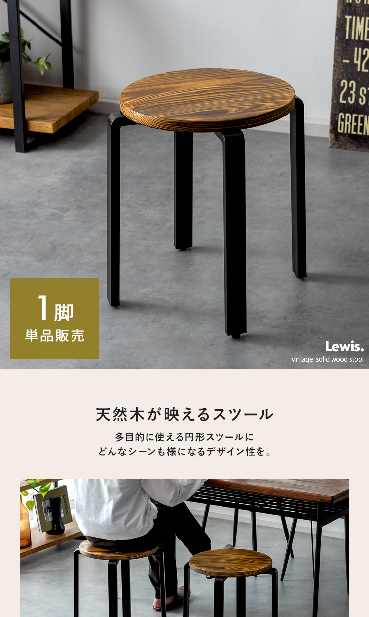 天然木ヴィンテージスツールLewis〔ルイス〕 1脚単体販売