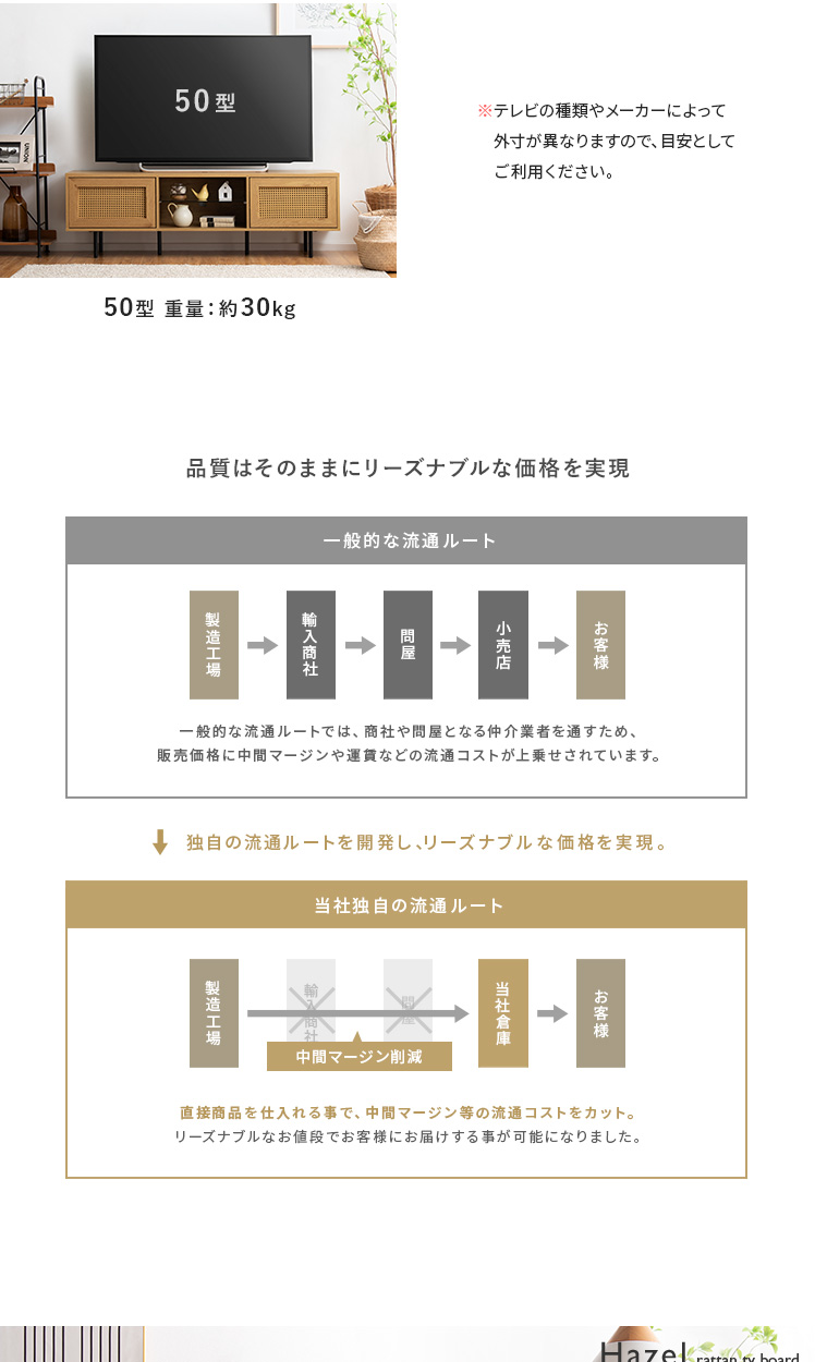 [幅150] ラタンテレビ台 Hazel〔ヘイゼル〕