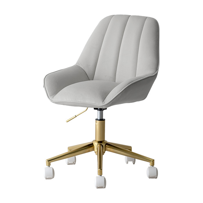 上品なベロア生地とゴールド脚が魅力のキャスターチェア。優れたデザイン性と快適な座り心地で、長時間の作業もおしゃれに快適。