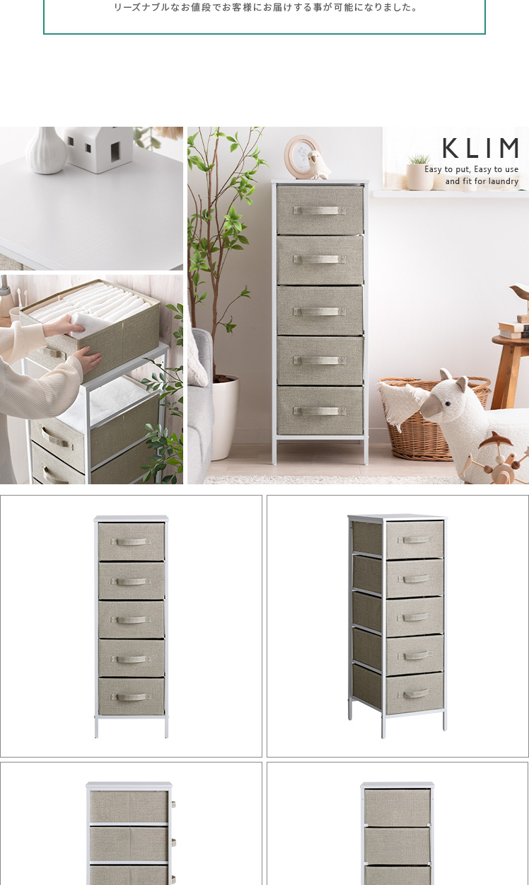 [幅34/5段] ファブリックチェスト KLIM〔クリム〕5杯タイプ