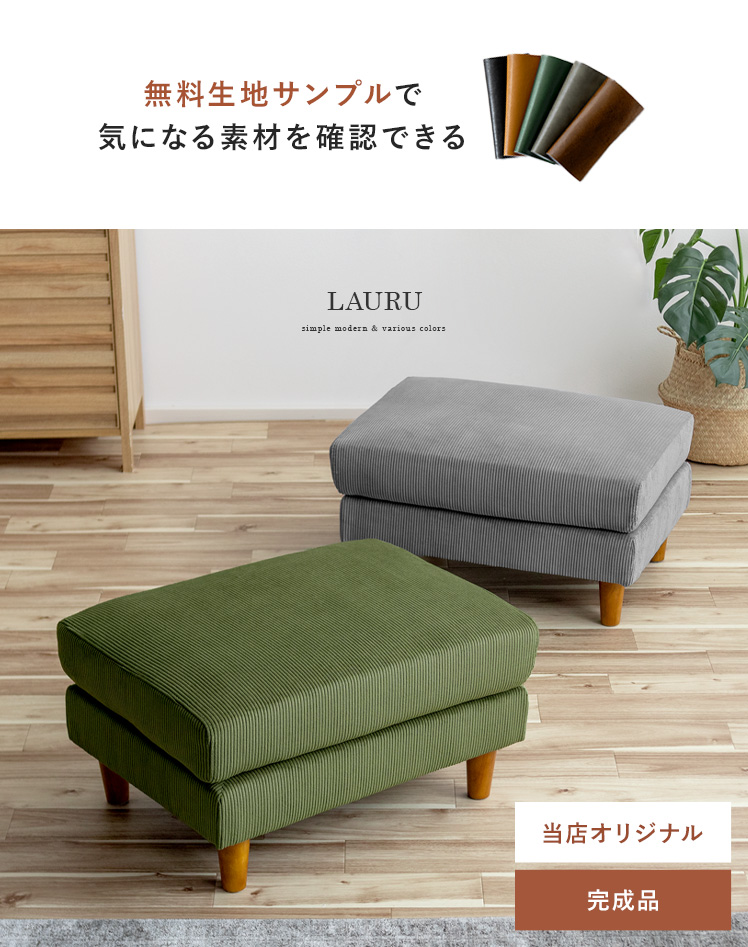 オットマン LAURU〔ラウル〕コーデュロイタイプ/シンプルで合わせやすい定番デザインと上質な座り心地で人気のソファ”LAURU”から待望のオットマンが登場♪座面の高さや幅もソファシリーズと合うように設計されておりますので、オットマンをソファとぴったり繋げて使用して頂けます。合わせ方次第で、ソファベッド風や、カウチソファ風など幅広いスタイルをお楽しみいただけます。ソファシリーズと合わせた選べる9色の豊富なカラーバリエーションに、質感の良い天然木脚部を合わせた、見た目のデザイン性も目を惹くオットマンとなっております。お気に入りのくつろぎ空間に、くつろぎスタイルの幅を広げるLAURUオットマンをプラス♪快適性のアップしたワンランク上のリビングづくりを。