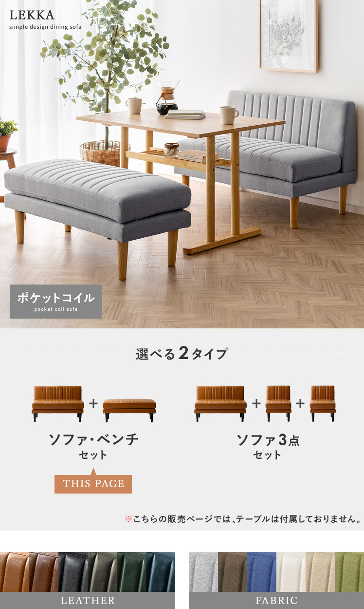 【2Pソファ+ベンチ】 Lekka〔レッカ〕 ダイニングソファ・ベンチセット