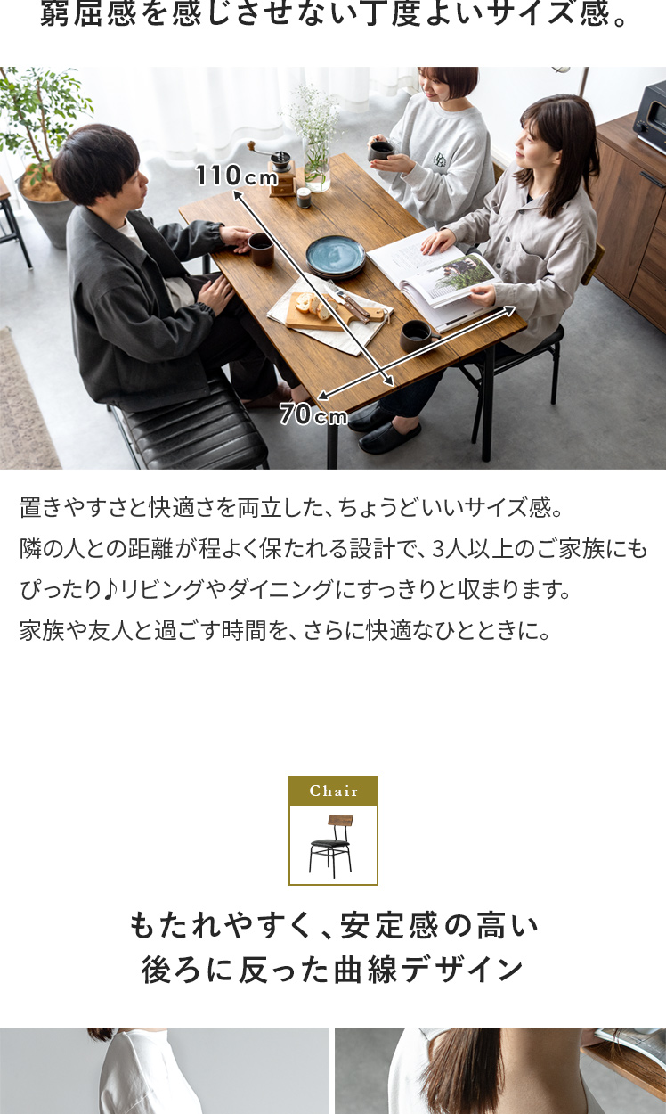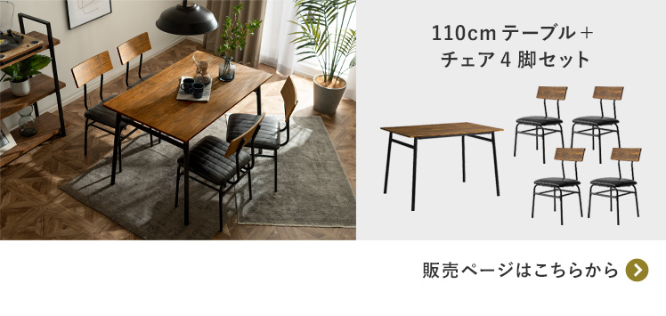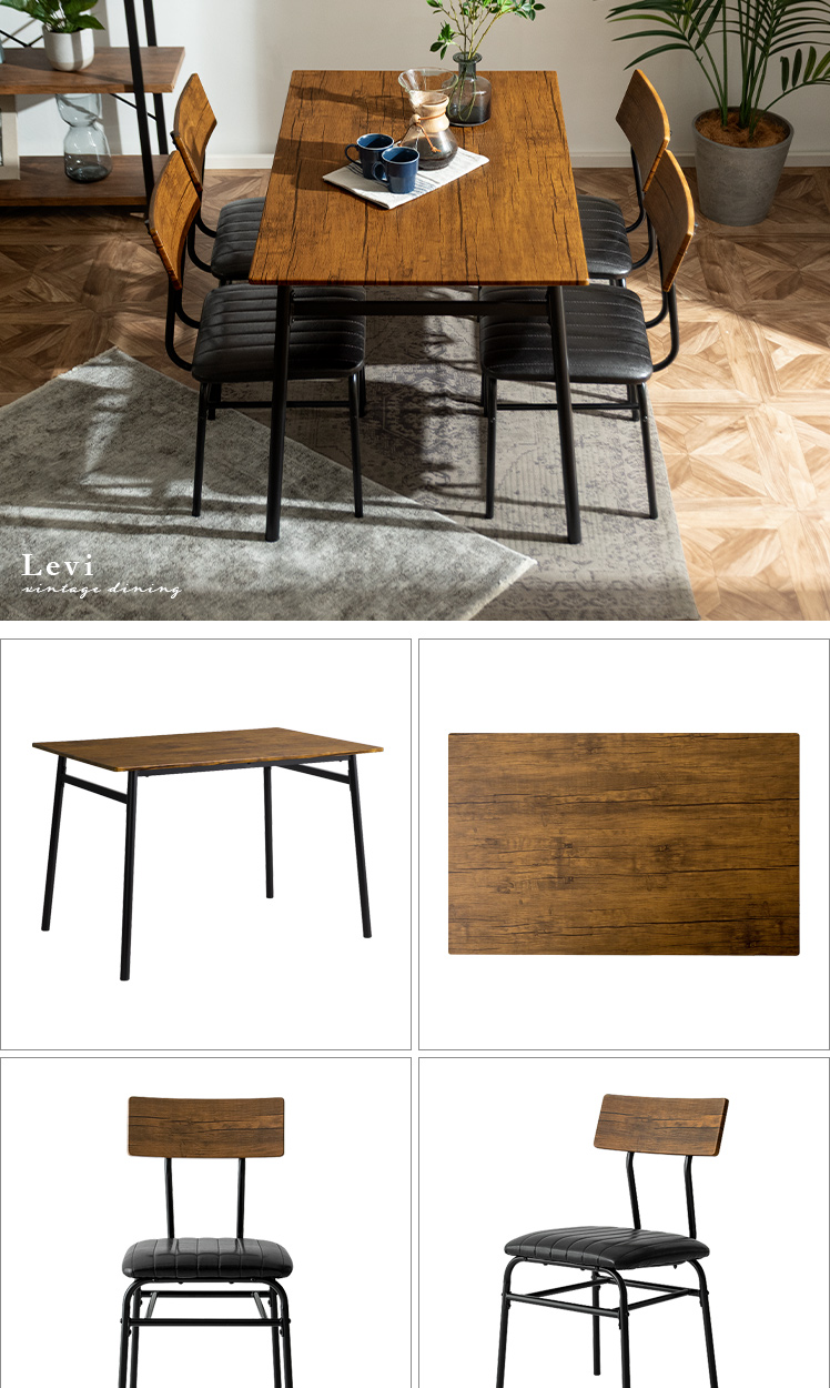 【セット】[幅110] ヴィンテージ風ダイニング4点セット Levi〔リーバイ〕