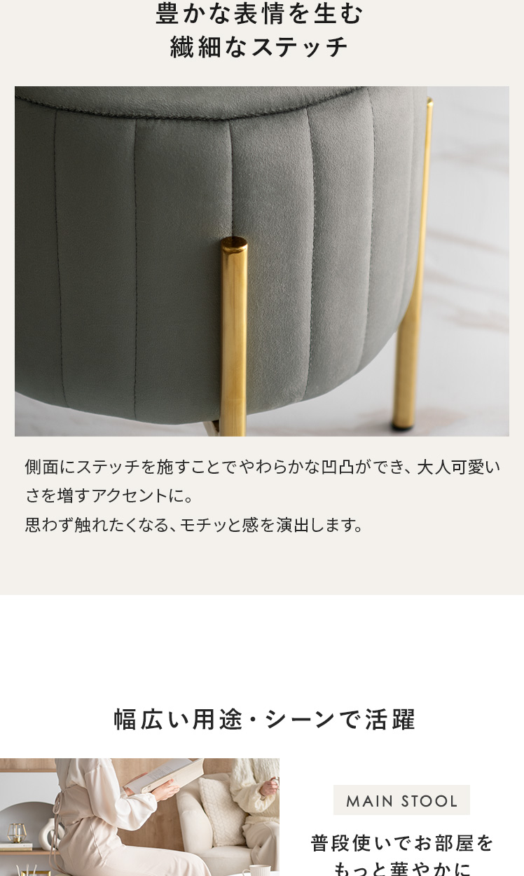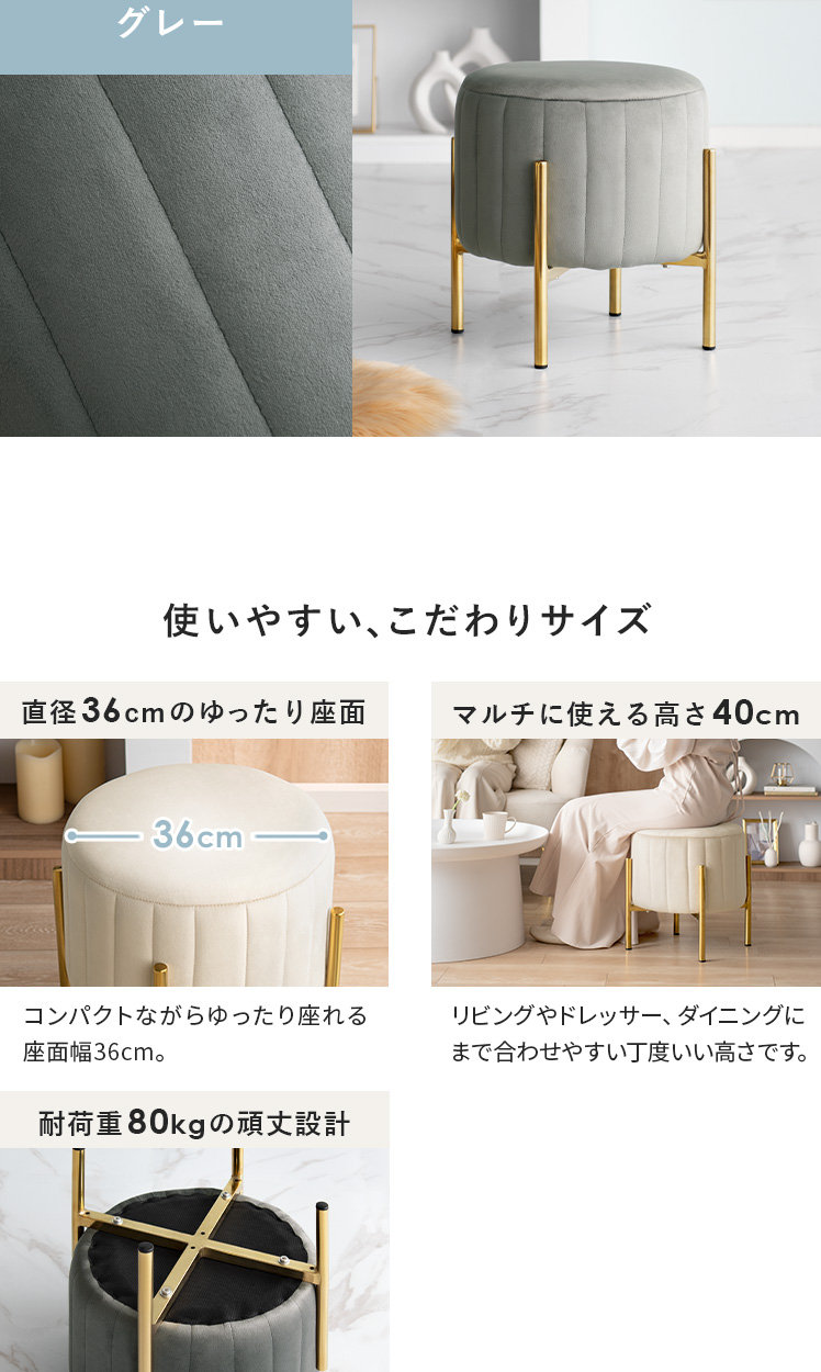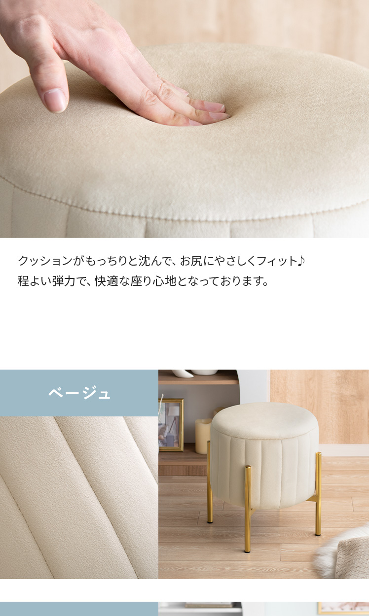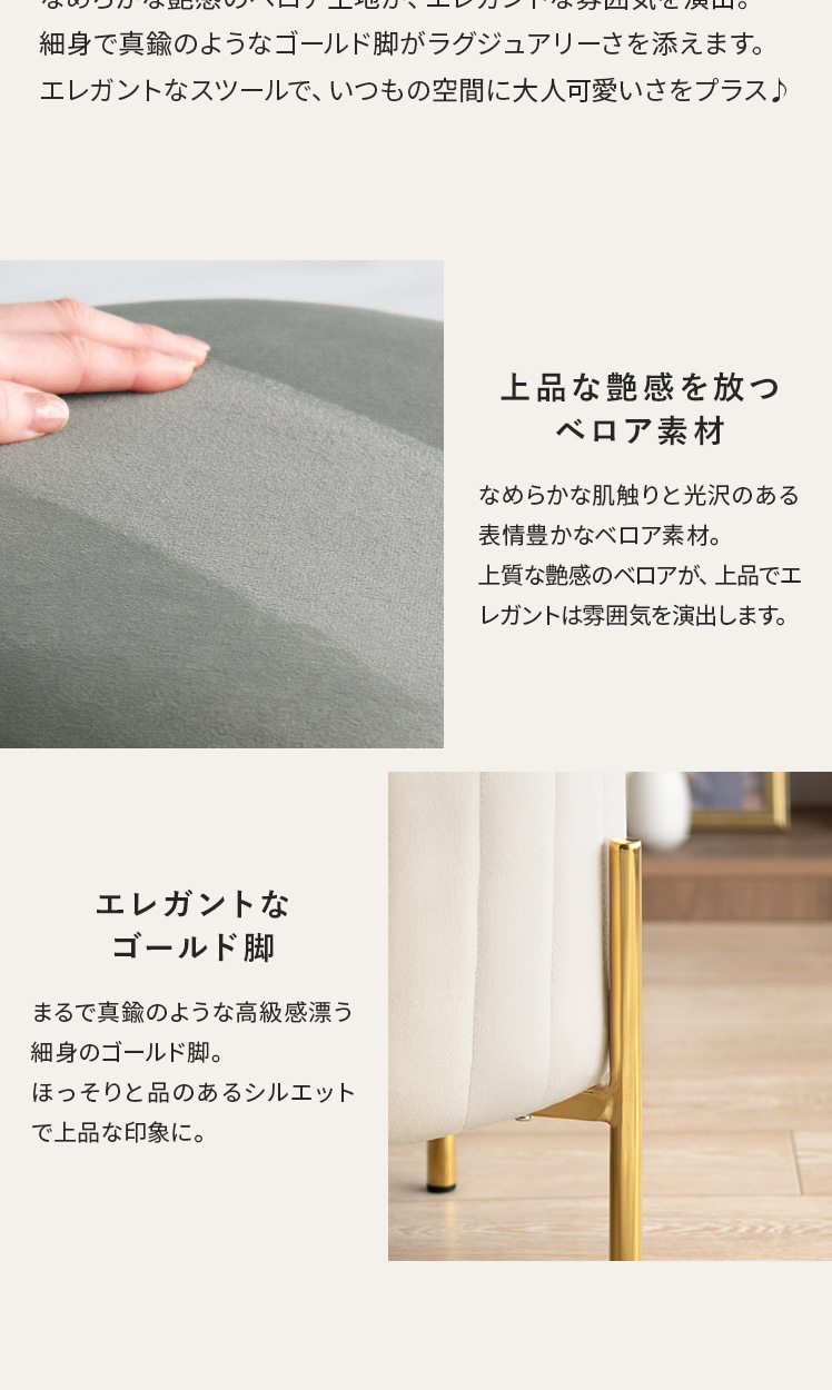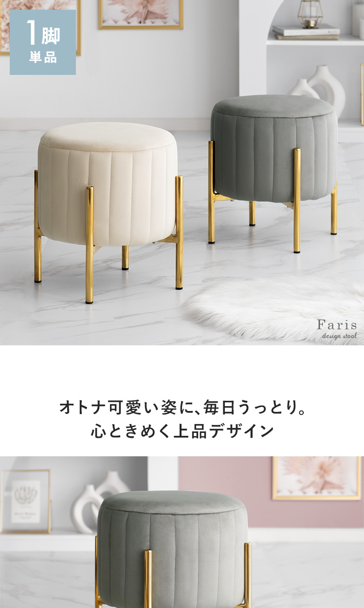 デザインスツール Faris〔ファリス〕/スツール/イス/椅子/ゴールド脚/ベロア/リビング/ダイニング/玄関/ドレッサー/ダイニングチェア/完成品/韓国インテリア/おしゃれ/オシャレ/大人可愛い/エレガント/ラグジュアリー/ベージュ/グレー