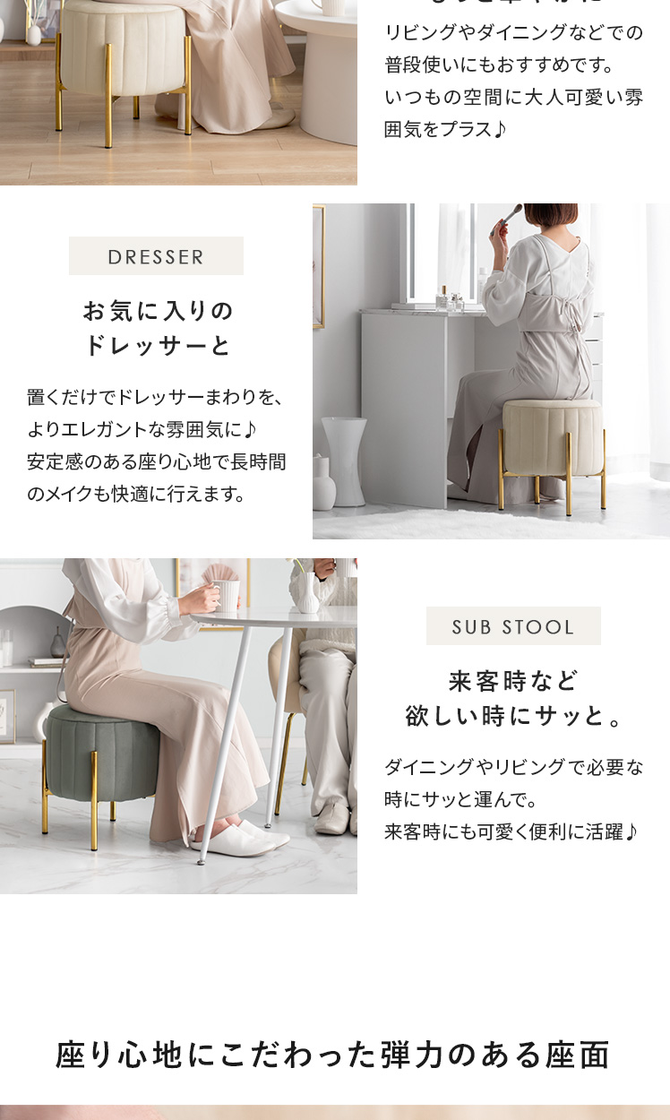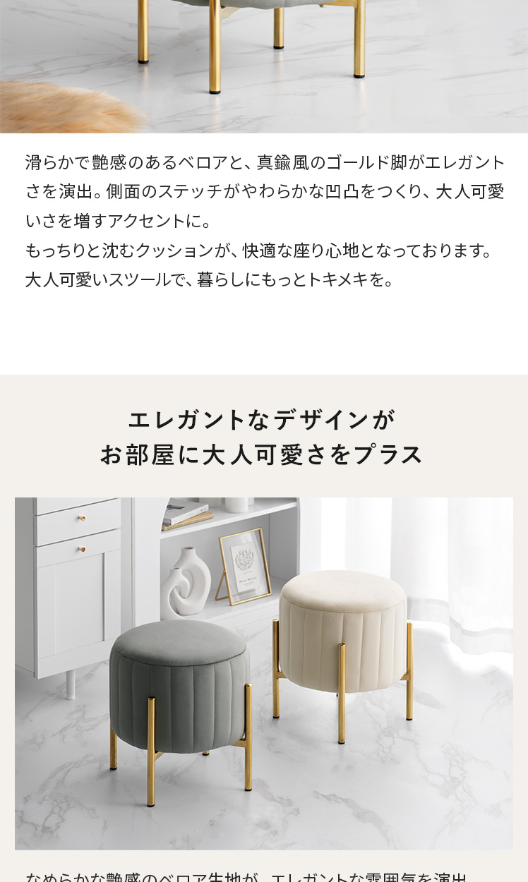イス 椅子 ゴールド脚 ベロア リビング 玄関 ドレッサー 完成品 韓国インテリア おしゃれ 大人可愛い エレガント ラグジュアリー ベージュ グレー【5%OFFクーポン対象|公式なら毎日お得】