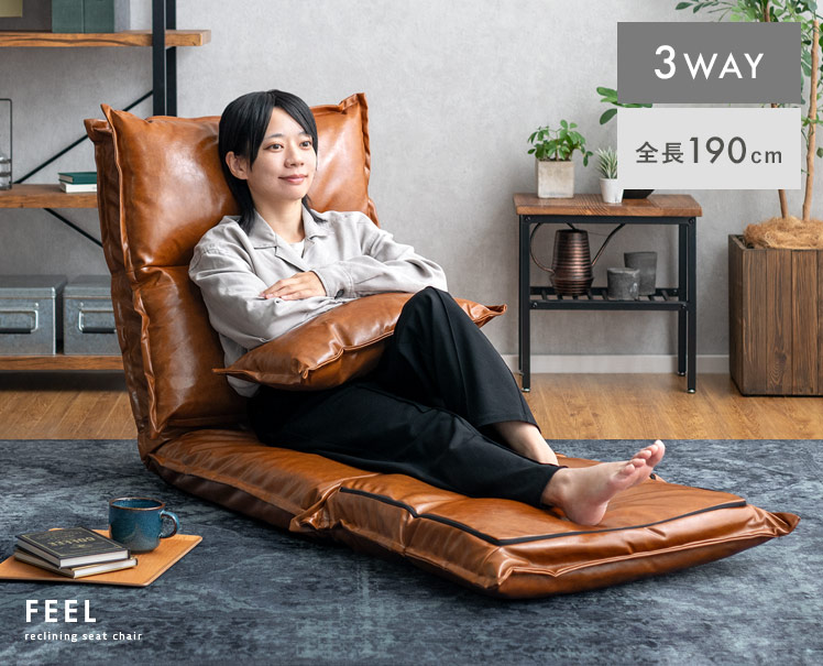 3WAY伸ばせるリクライニング座椅子 FEEL(フィール) レザータイプ