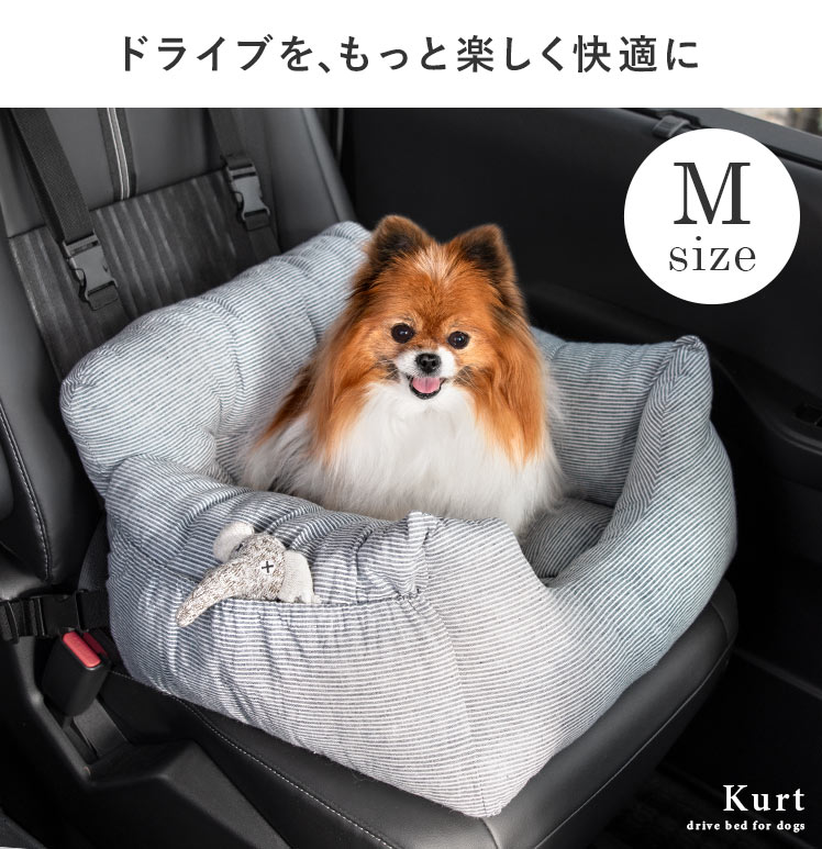 犬用ドライブベッド Kurt〔クルト〕 Mサイズ/お家でも車でも使えるペットベッドKurt(クルト)いつもの愛用ベッドを車に設置できるから、ドライブ中もわんちゃんがリラックス。全面極厚クッションだから、揺れる車内でもゆったりくつろげます。調整ベルト2本とシートベルトループ、底面の滑り止めで座席に固定できるから、ドライブ中も安心♪わんちゃんのリラックス空間を持ち運んで、お出かけをもっと楽しく快適に。