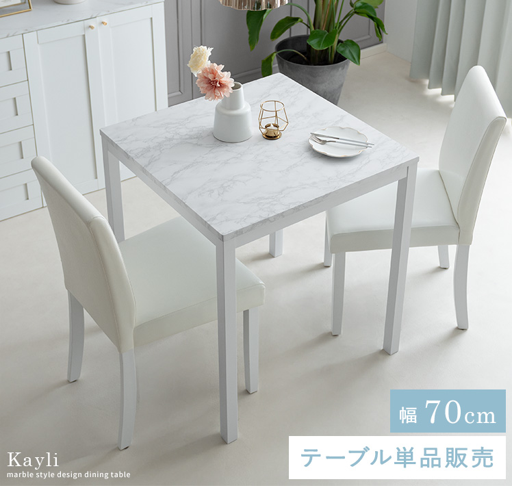 大理石調ダイニングテーブル Kayli〔ケイリ〕70×70cm/高級感あふれる大理石調が、空間を上質に引き立てるダイニングテーブル。白を基調とした美しいデザインが、毎日の食卓を惹き立てます。家族や友人と過ごす時間を、さらに快適なひとときに。