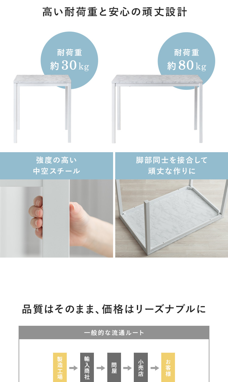 おしゃれ 食卓テーブル アイアン スチール 正方形 カフェテーブル 4人 コンパクト シンプル マーブル 海外風 モノクロ ホワイトコーデ【5%OFFクーポン対象|公式なら毎日お得】