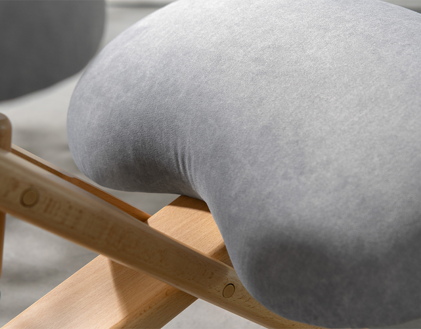 丸みを帯びたフォルムと、天然木の質感を活かしたシンプルで温かみのあるデザイン。 主張しすぎない佇まいで、リビングやダイニング、子ども部屋など、さまざまなインテリアに自然と馴染みます。 横幅45cmとコンパクトなサイズ感は学習机の下にもスッキリ収納できて、使わない時にも邪魔になりません。 アフターサービスも充実しており、パーツが摩耗してしまった場合でも、パーツ1つからご購入いただけます。